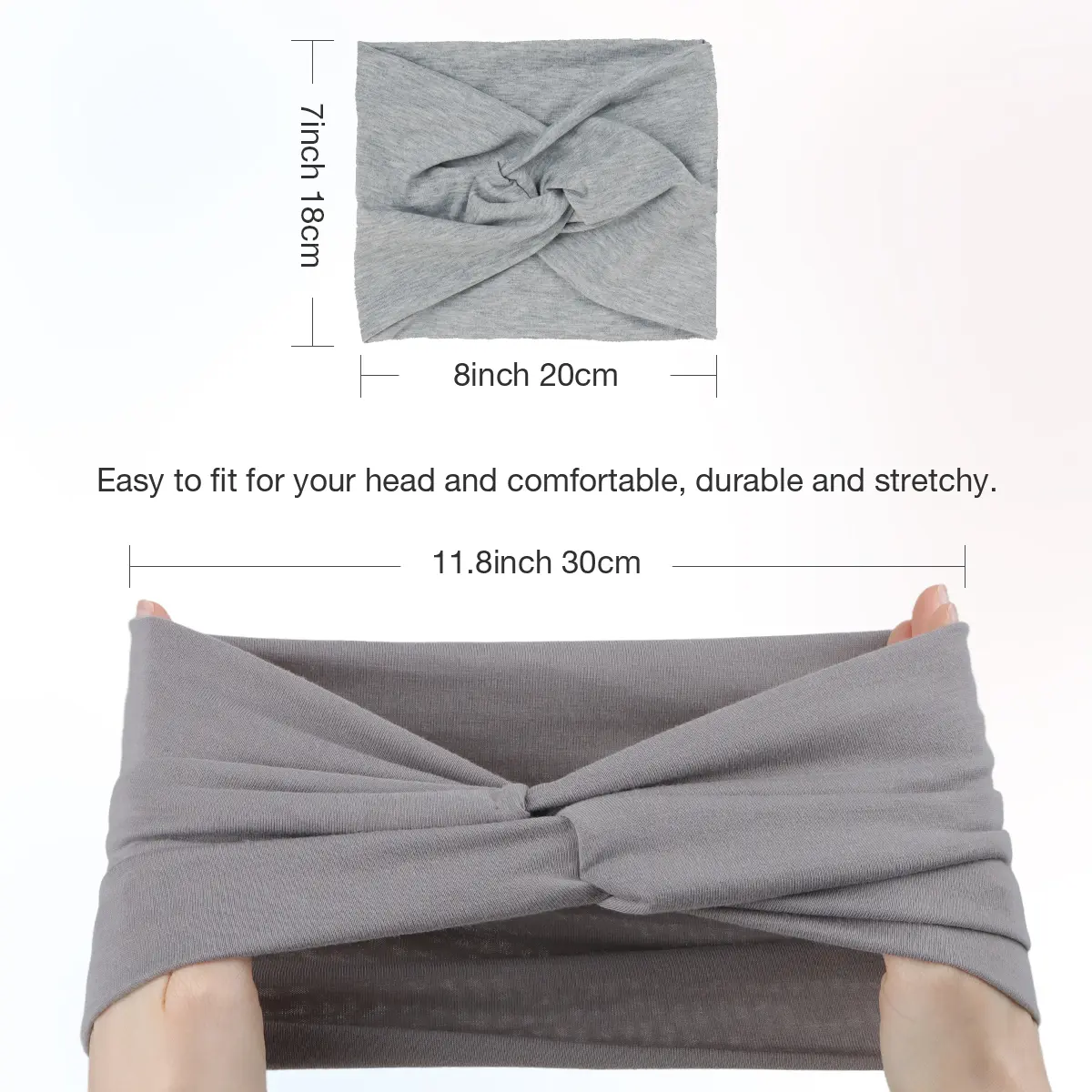 ·Extra Wide Headbands: Chic, classic head bands for women's hair with top knot design for every outfit that you have. Extra large size 8*7 inch. The headwraps can be stretched up to 11.8inch" for added comfort and a secure fit. Suitable for women teens girls with different head size.
