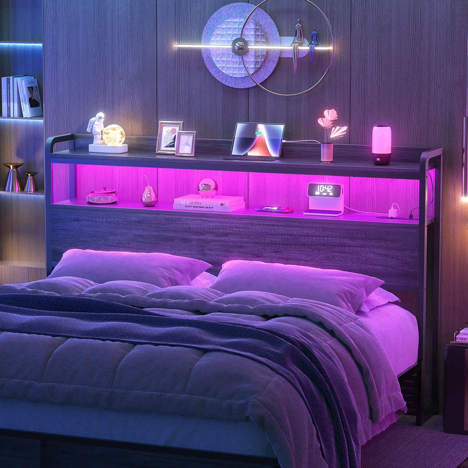 ·【with Colorful LED RGB Lights】Experience a unique and striking sleeping environment with our LED headboard that features over 60,000 colors and multiple flashing modes to choose from. Our music sync function and timer functions allow you to change the light's color with the rhythm of the sound and music. You can customize any color you like to match any interior theme and aesthetic with the remote or APP control.