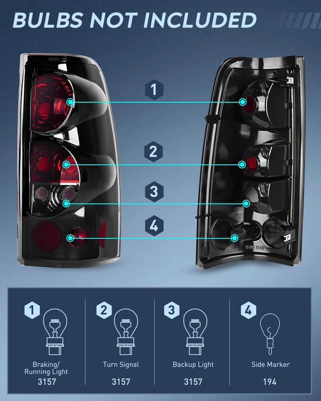 ·Package includes: 1 pair of headlight and taillight (driver side and passenger side).The bulbs are NOT included