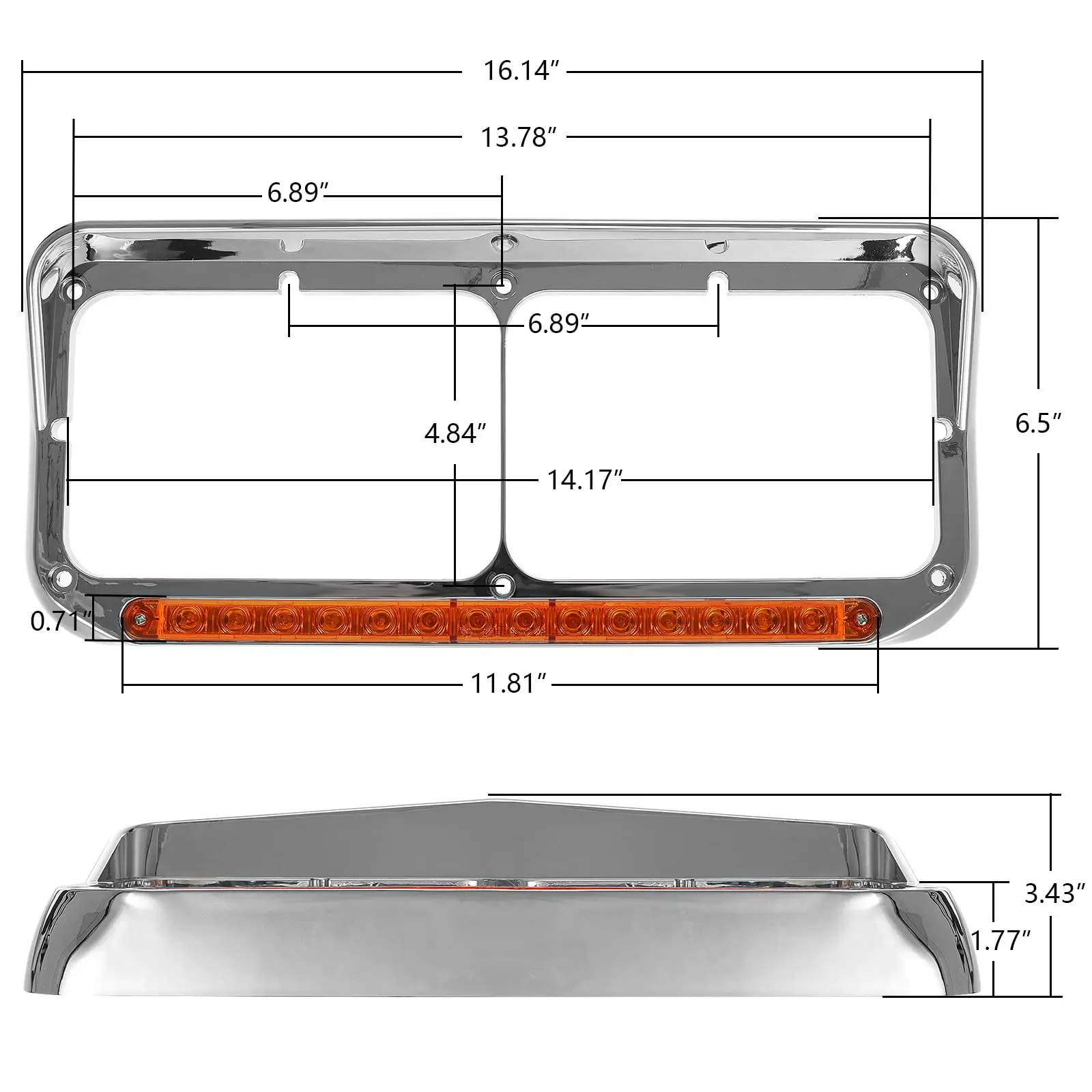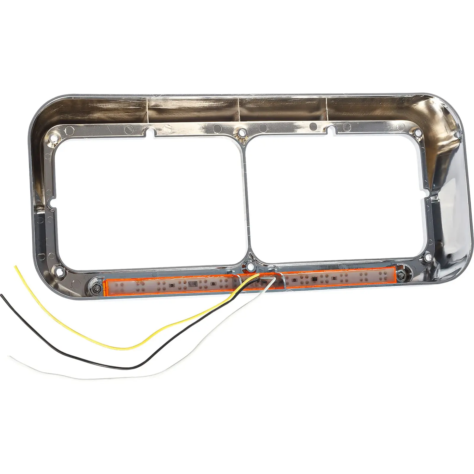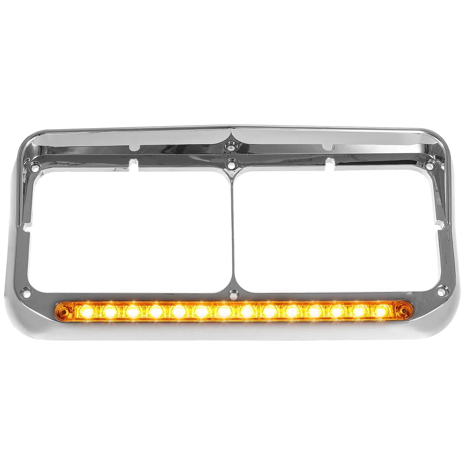 ·Package includes 2x Driver and Passenger Side 4x6 Headlight Bezel with 12 inch Amber 14 LEDs Sequential Light Strip Chrome.