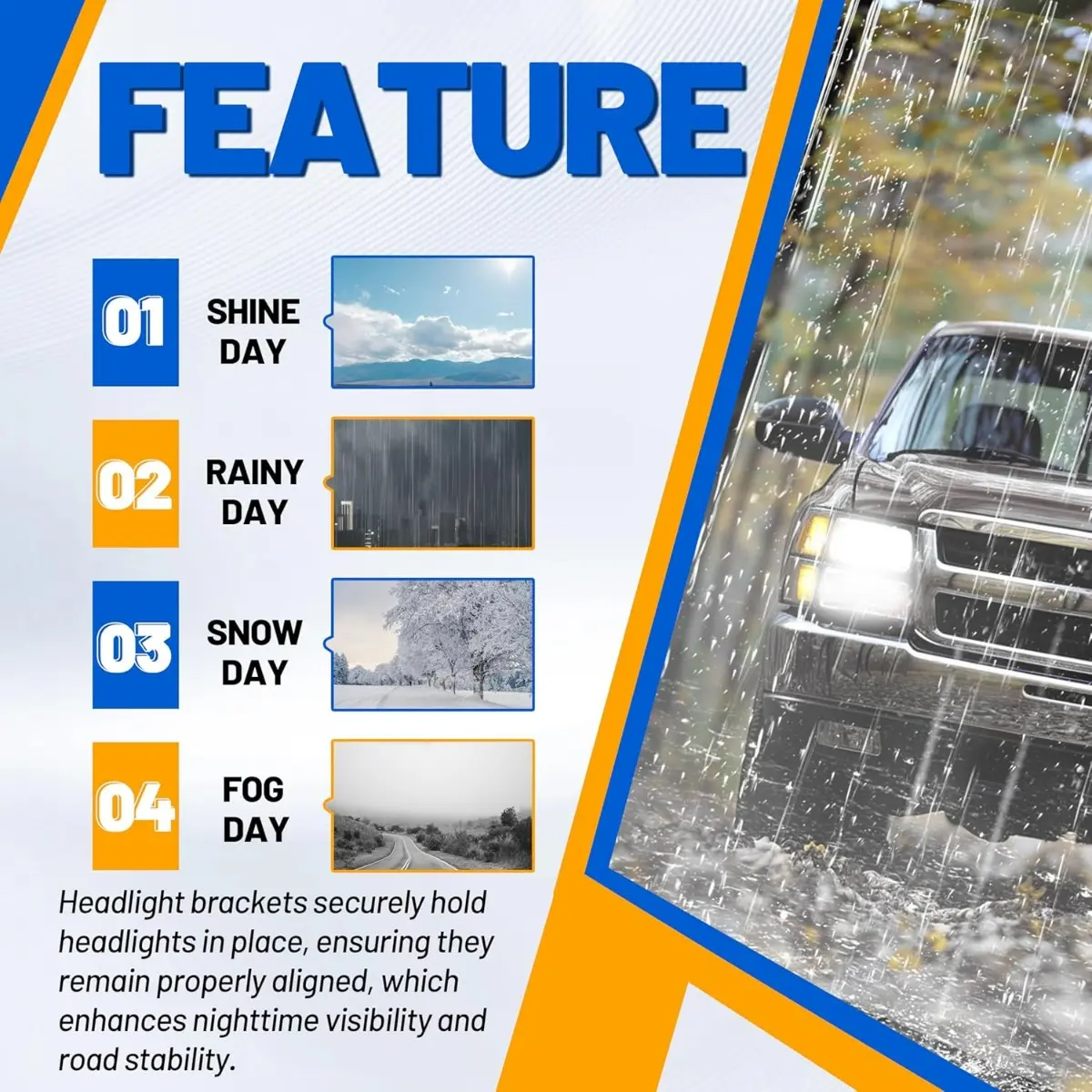 ·High Performance: Headlight brackets securely hold headlights in place, ensuring they remain properly aligned, which enhances nighttime visibility and road stability. They also absorb shocks and vibrations, helping to reduce headlight flickering and extending bulb life