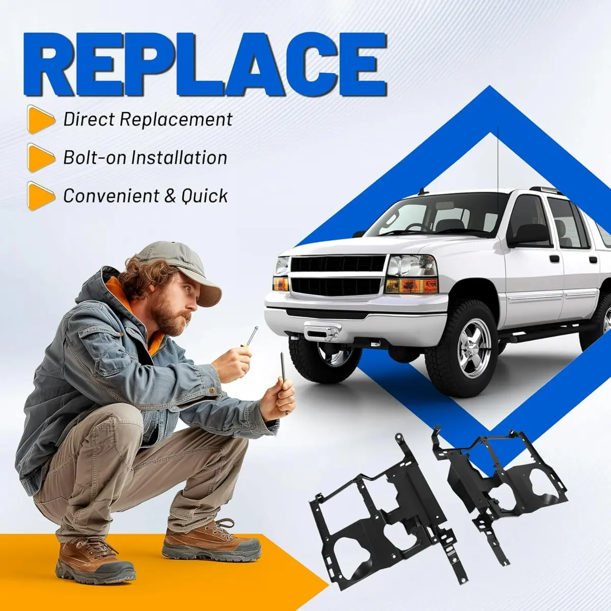 ·Package Includes: 1x Pair of Headlight Bracket (Left & Right). Install directly with screws, no additional drilling required, instructions and installation hardware are not included