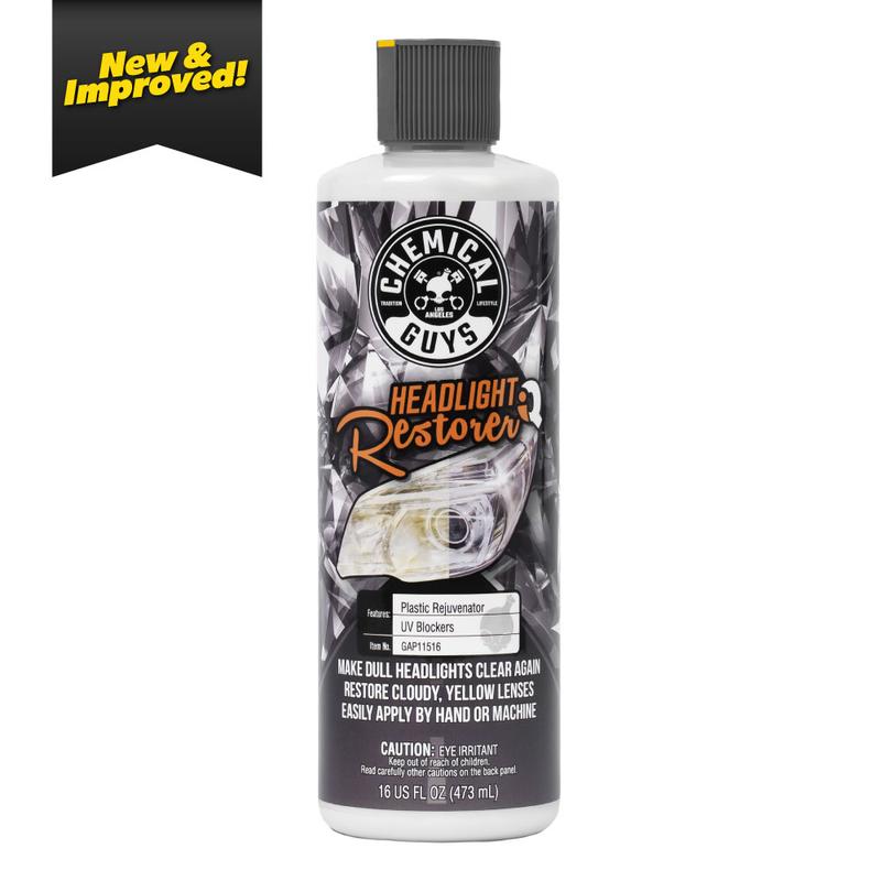 Restore yellowed, hazy headlights and other plastic lenses quickly with Chemical Guys Headlight Restorer IQ. Its adaptive abrasive technology cuts through oxidation and polishes as you work, to deliver a clear, polished finish. Use by hand or machine for fast, easy results.