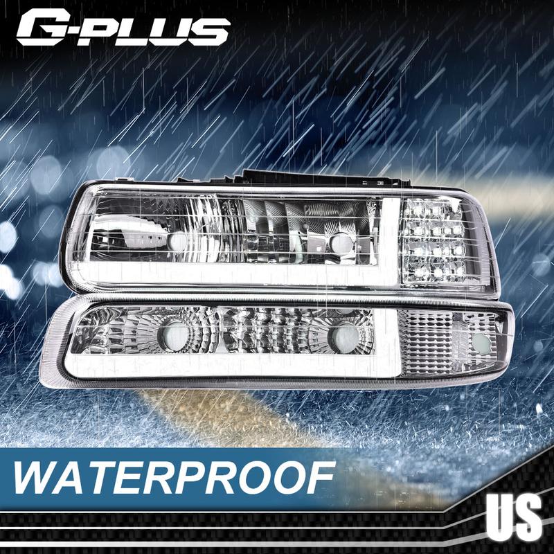 Headlights Bumper Lamps Chrome LED DRL Fit For 99-02 Chevy Silverado 00-06 Tahoe
