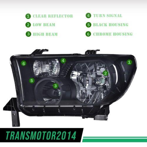5. Fit For 2007-2013 Toyota Tundra 2008-2017 Sequoia Headlights LH+RH Black/Smoked