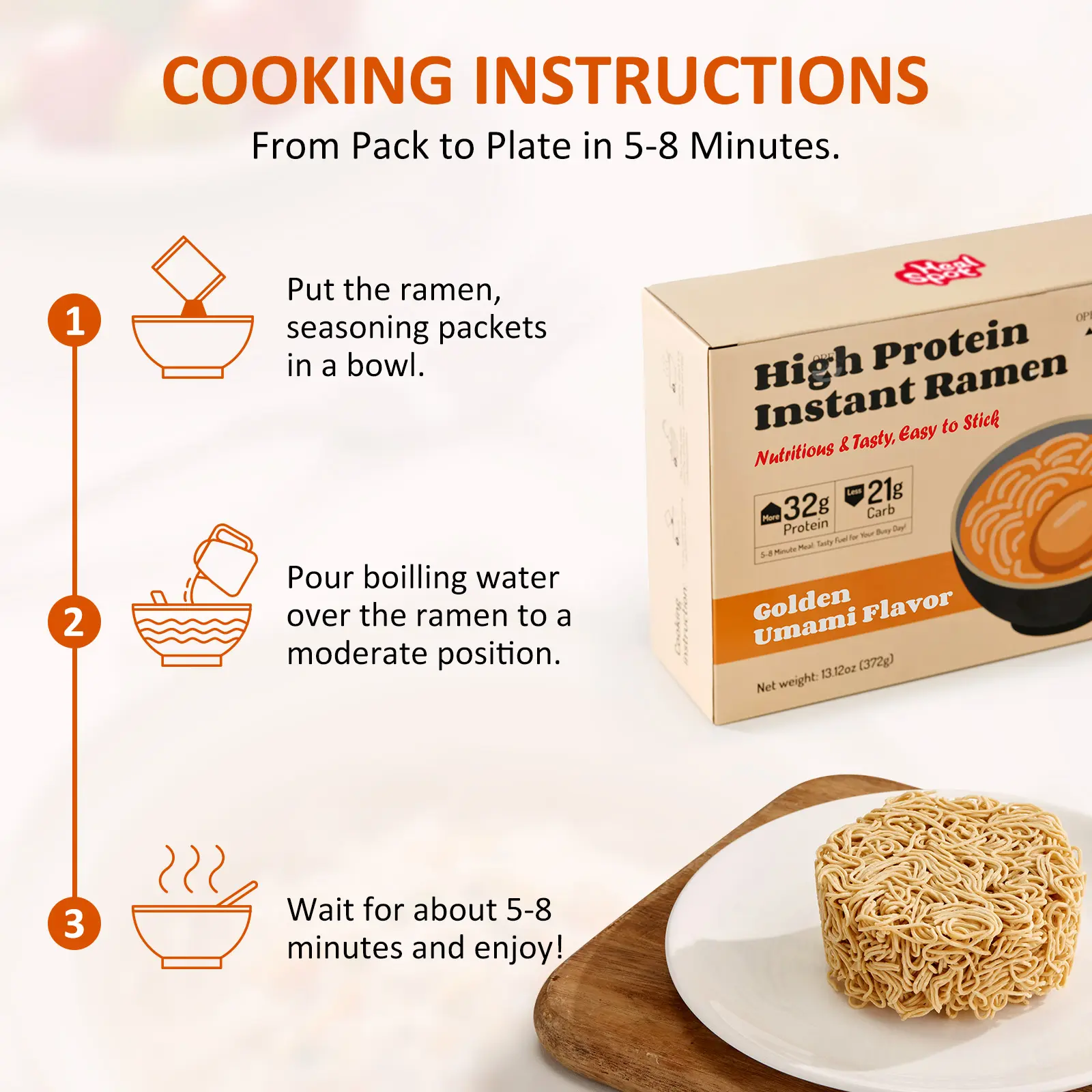 Healspot High Protein Instant Ramen 6 Pack – 32g Plant Protein per Serving, Non-Fried, Low Carb, Vegan & Keto-Friendly (Golden Umami)