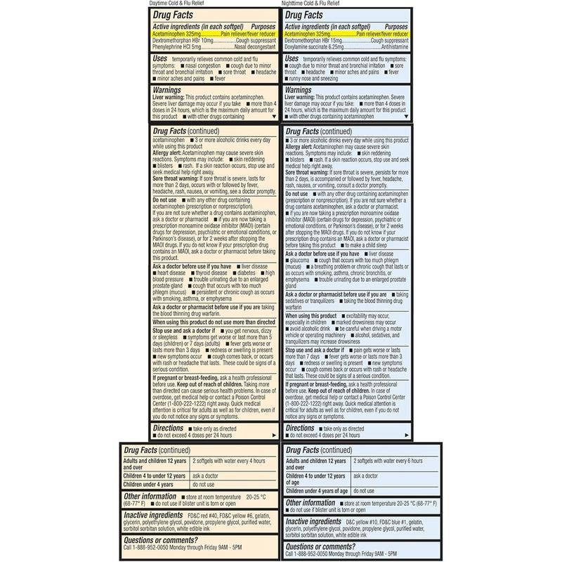 · HealthA2Z Daytime and Nighttime Cold & Flu Relief provides around-the-clock symptom support. The Daytime softgels are non-drowsy for clear, focused activity, while the Nighttime softgels help ease discomfort so you can sleep and recover.