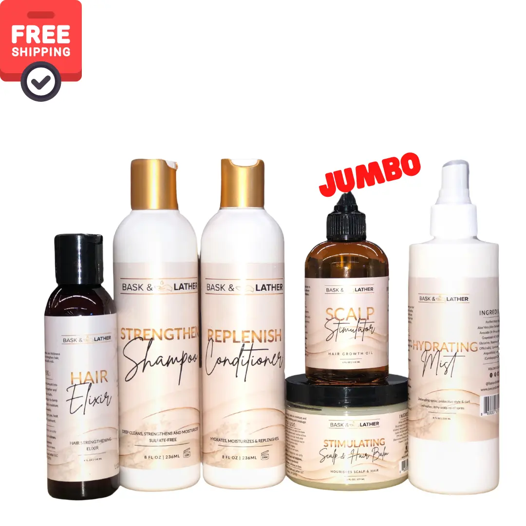 Elevate your hair health with our comprehensive starter kit! This bundle includes everything needed for healthier hair. Perfect for beginners, it offers a complete solution for your hair care needs. Say goodbye to dry, unhealthy hair and hello to vibrant locks!