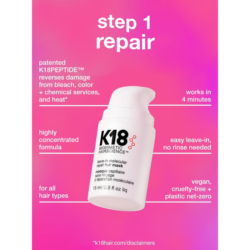 Water (Aqua) (Eau),Alcohol Denat.,Propylene Glycol,Cetearyl Alcohol,Dicaprylyl Ether,Cetyl Esters,Behentrimonium Chloride,Polysorbate 20,sh-Oligopeptide-78 (K18PEPTIDE™),Hydrolyzed Wheat Protein,Hydrolyzed Wheat Starch,Isopropyl Alcohol,Tocopherol,Phenoxyethanol,Potassium Sorbate,Citric Acid,Fragrance (Parfum),Geraniol,Linalool,Hexyl Cinnamal,Benzyl Alcohol.