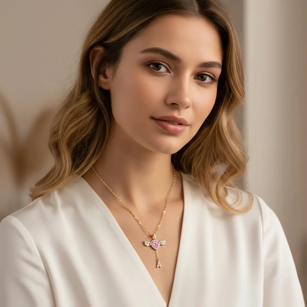 ·Angel wing design with sparkling accents – symbol of love & guardianship.