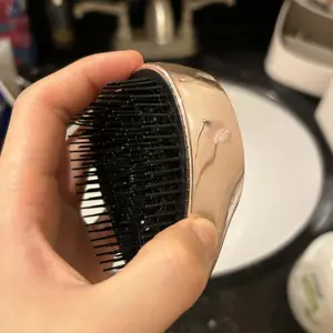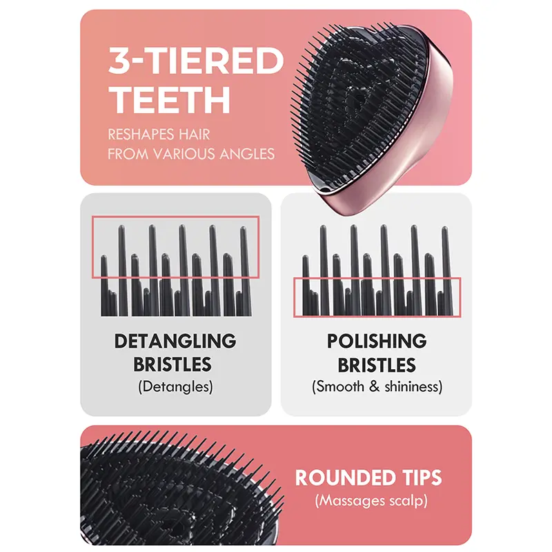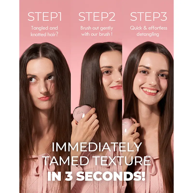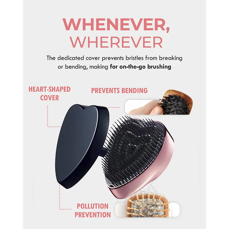 This adorable heart shaped brush can easily detangle my hair. This brush doesn't take a lot of space and pull out a lot of my hair when it's dry. Of course, it's easy to clean if there's some hair stuck to it. It's so cute!