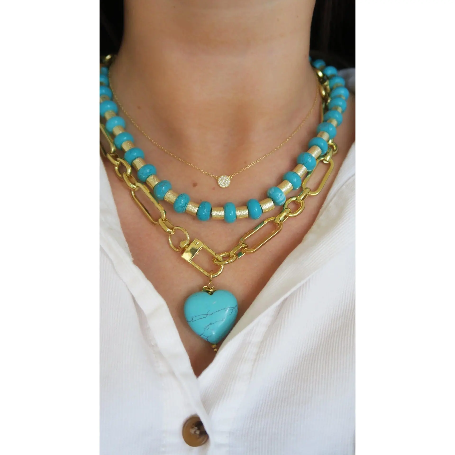 Even more beautiful in person! The chain is lightweight but sturdy and the turquoise pops against the gold!