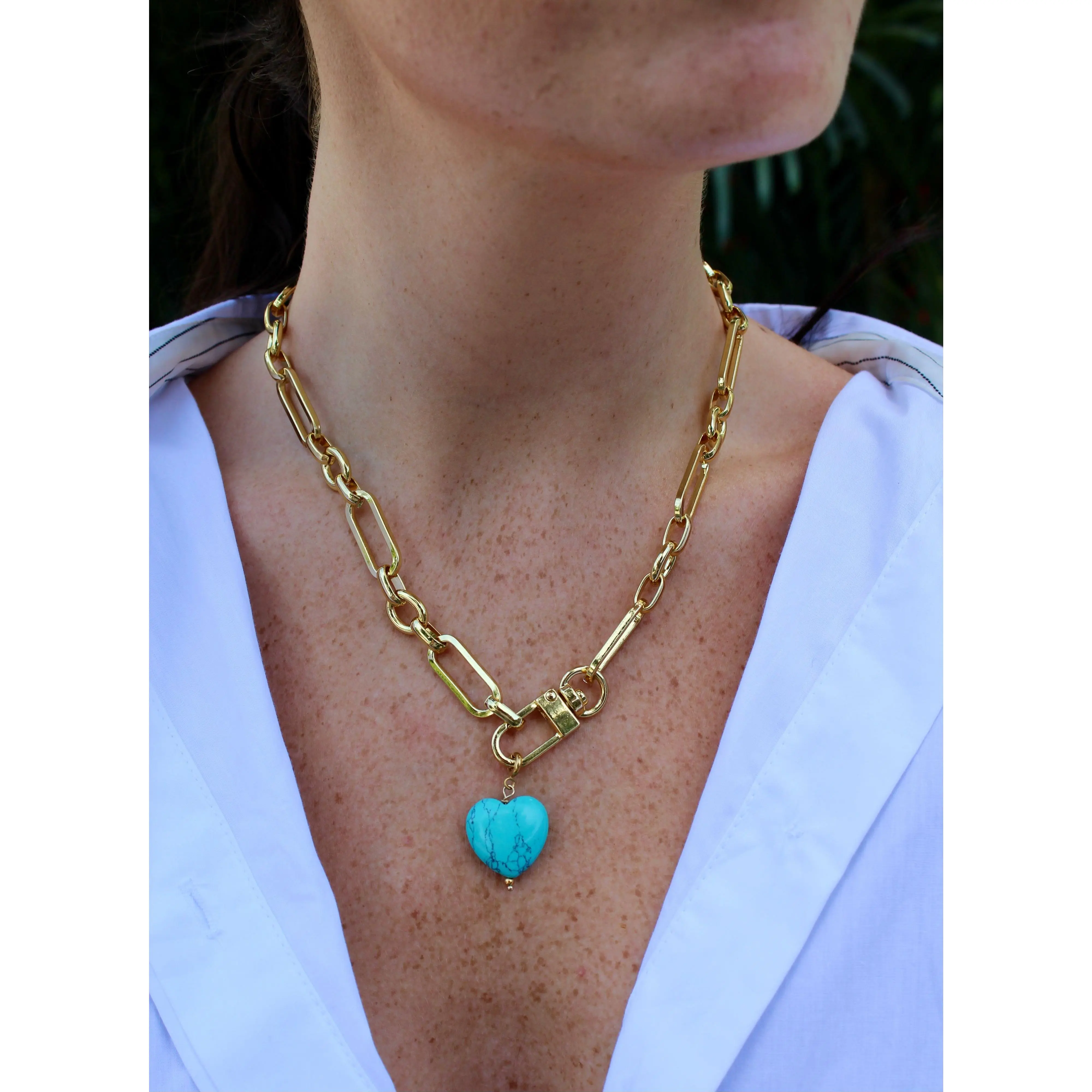 5. Marble Heart Charm Necklace - Turquoise
