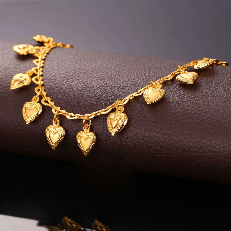 This luxurious anklet features meticulously crafted heart-shaped charms, adding a touch of sophistication to any ensemble.
