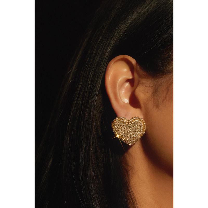 Everlasting Love Embellished Heart Earring - Gold