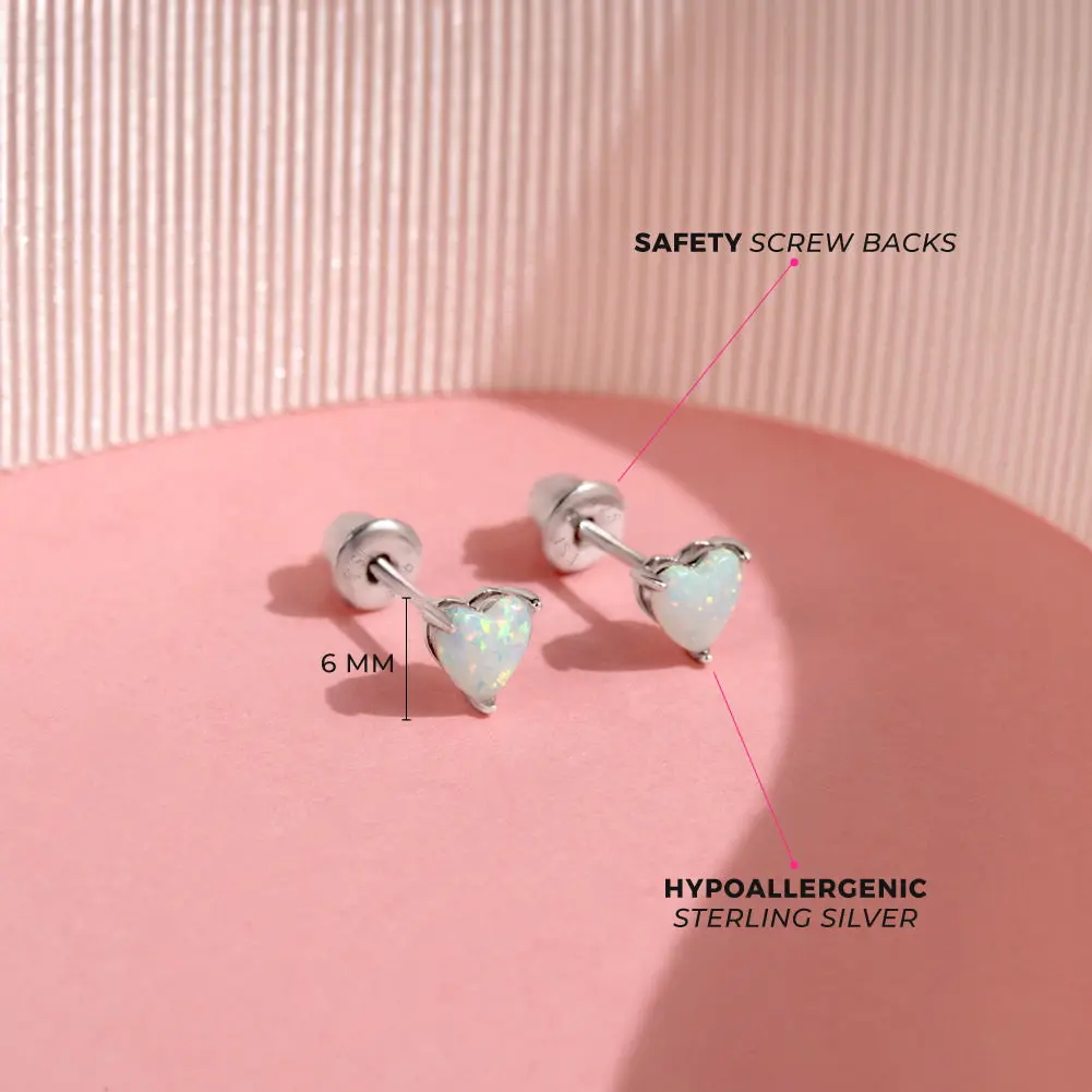 5. Opal Heart Kids / Children's / Girls Earrings Screw Back - Sterling Silver