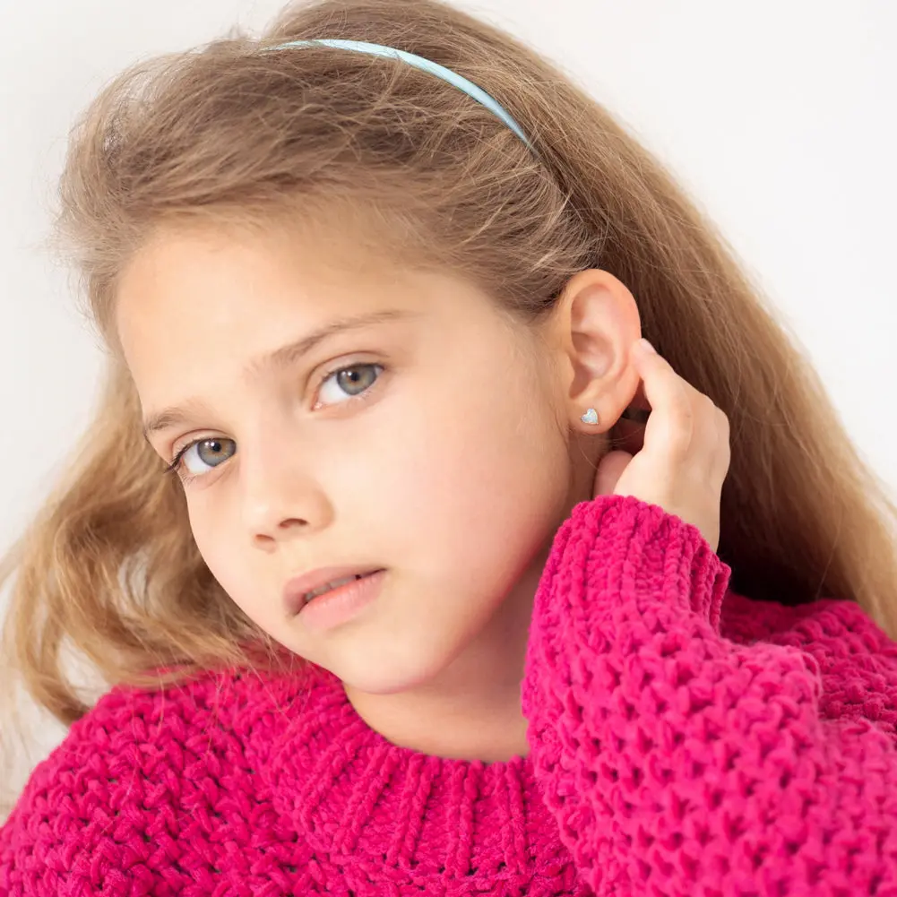 Our enchanting heart children's earrings, designed to add a touch of sparkle to your little one's look! These charming earrings feature delicate heart shapes adorned with stunning simulated opal stones, radiating a mesmerizing iridescence. Crafted from hypoallergenic 925 sterling silver, they are for children with sensitive ears, ensuring comfort and safety all day long. With their secure safety screw back closure, these earrings offer peace of mind, for active kids. Whether for everyday wear or a special occasion, these heart earrings are sure to capture hearts and make a delightful addition to any young fashionista's jewelry collection. Gift box included with purchase.