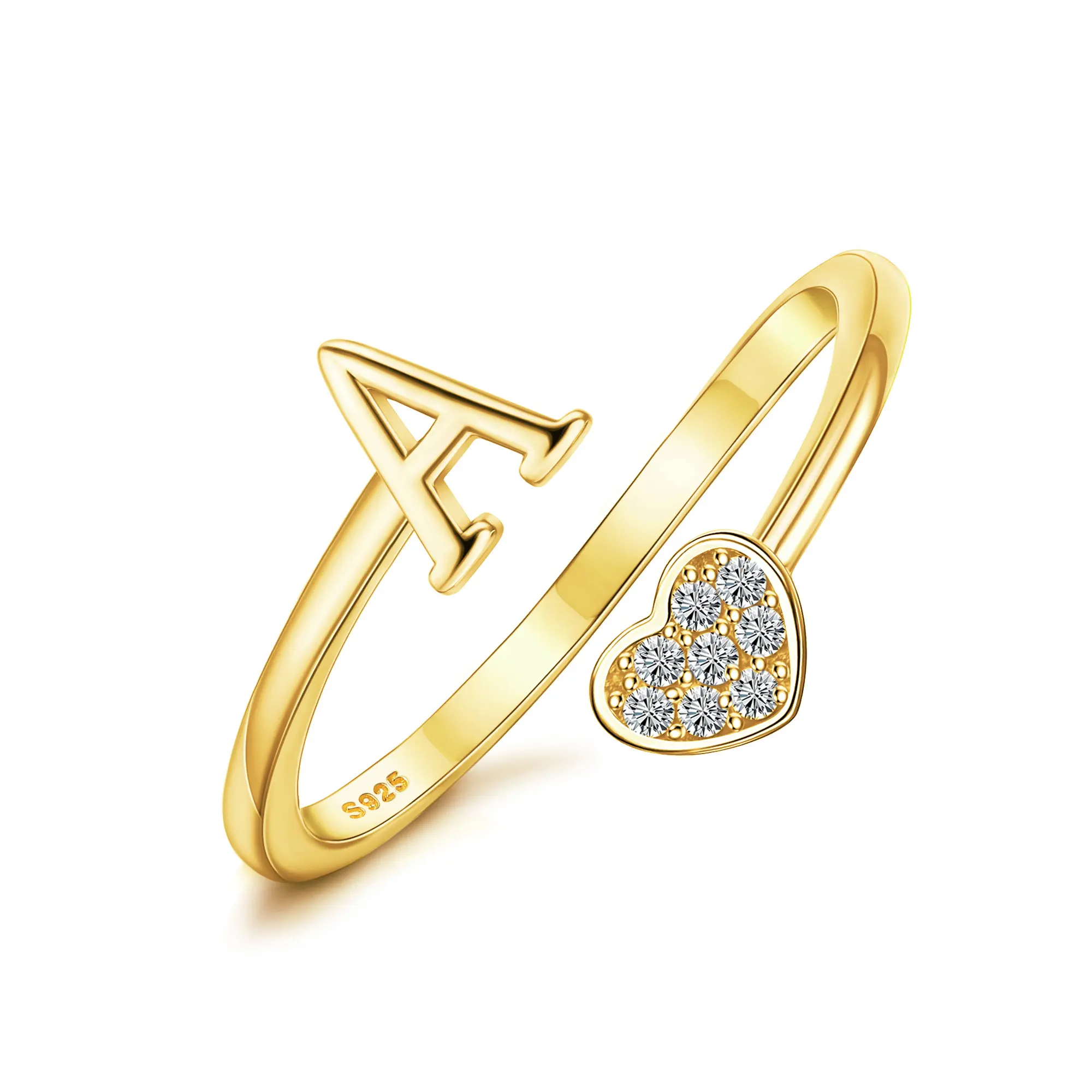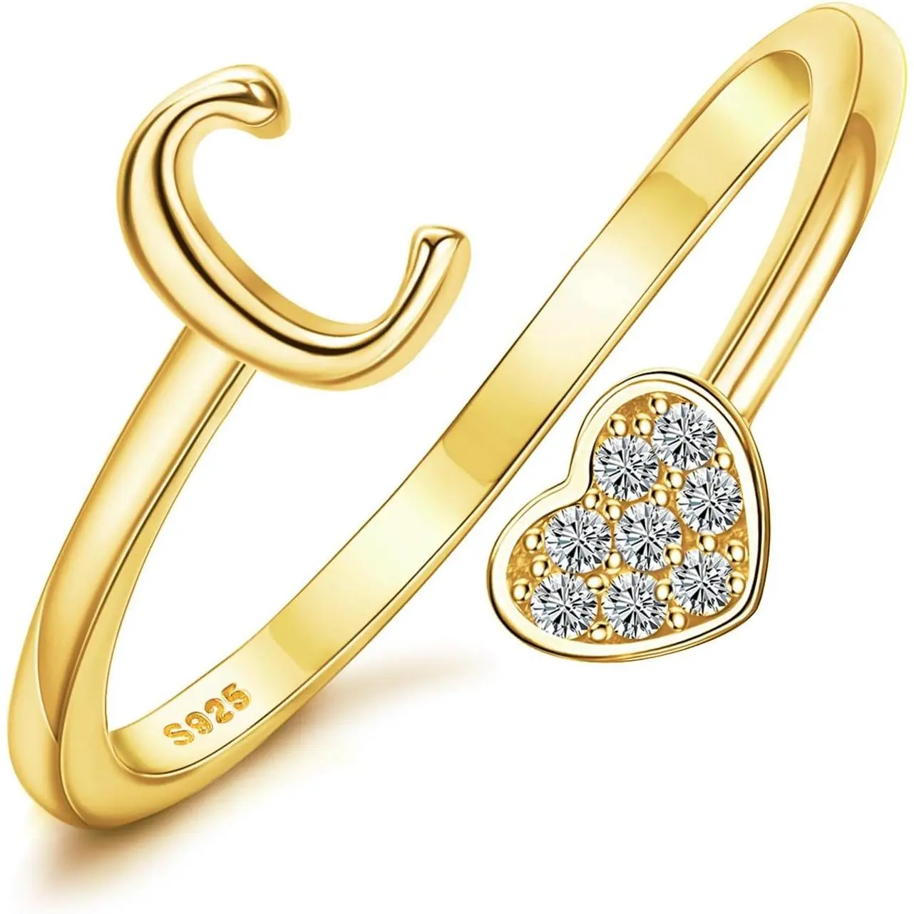 5. MILACOLATO 925 Sterling Silver Heart Initial Rings for Women Stackable Ring Adjustable Initial Rings for Teen s Cute Heart Alphabet Letter Rings, Letter A-Z SpringStatements