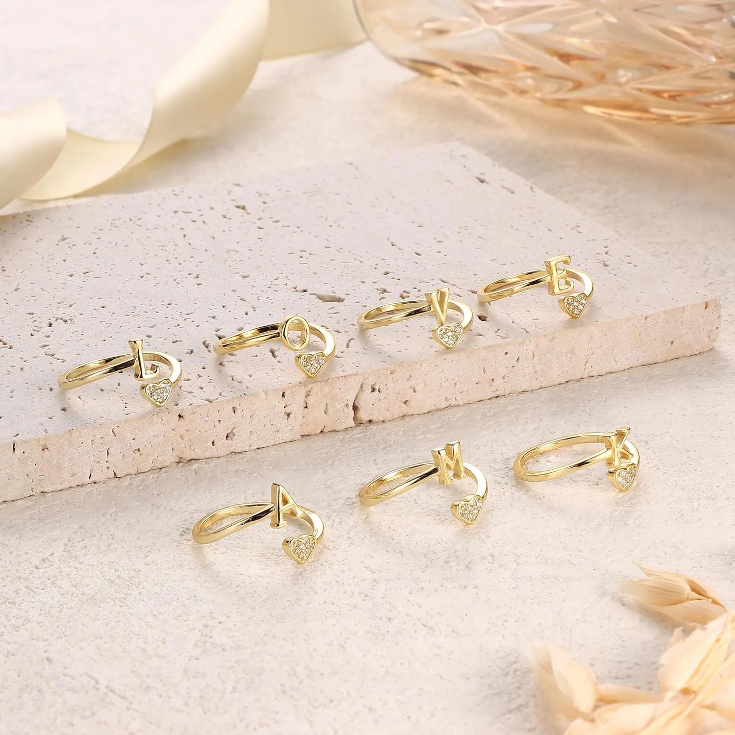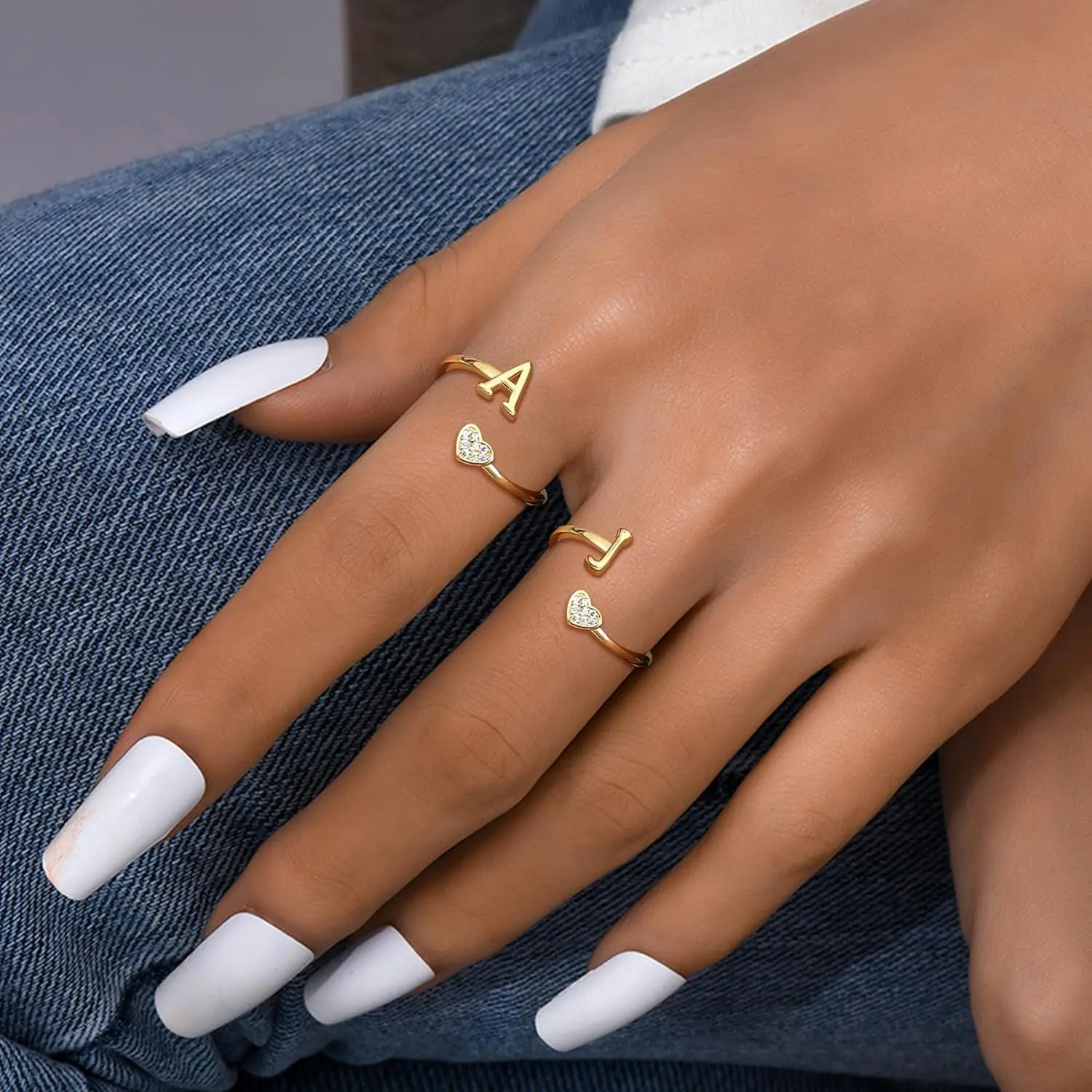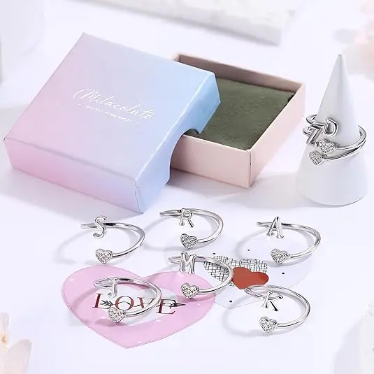 MILACOLATO 925 Sterling Silver Heart Initial Rings for Women  Stackable Ring Adjustable Initial Rings for Teen s Cute Heart Alphabet Letter Rings, Letter A-Z SpringStatements