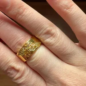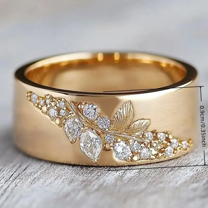 This ring features a stunning 18K gold leaf and zircon inlay. The combination adds a touch of elegance and luxury. Perfect for those who appreciate fine details in their jewelry. 🌟