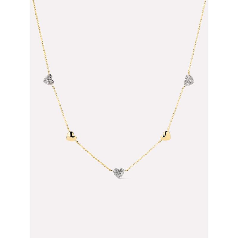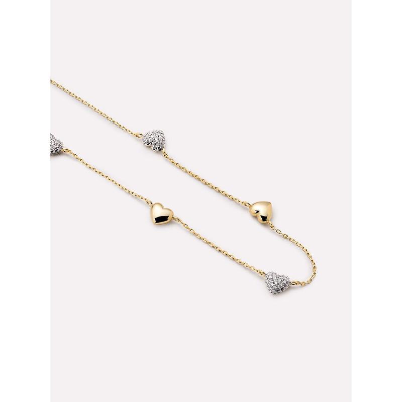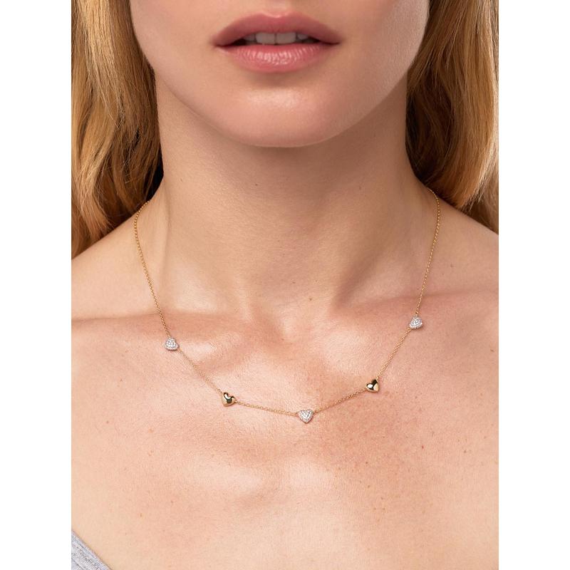 • Plated in 14k gold & rhodium • Station necklace with pavé hearts • Water-resistant & tarnish-proof