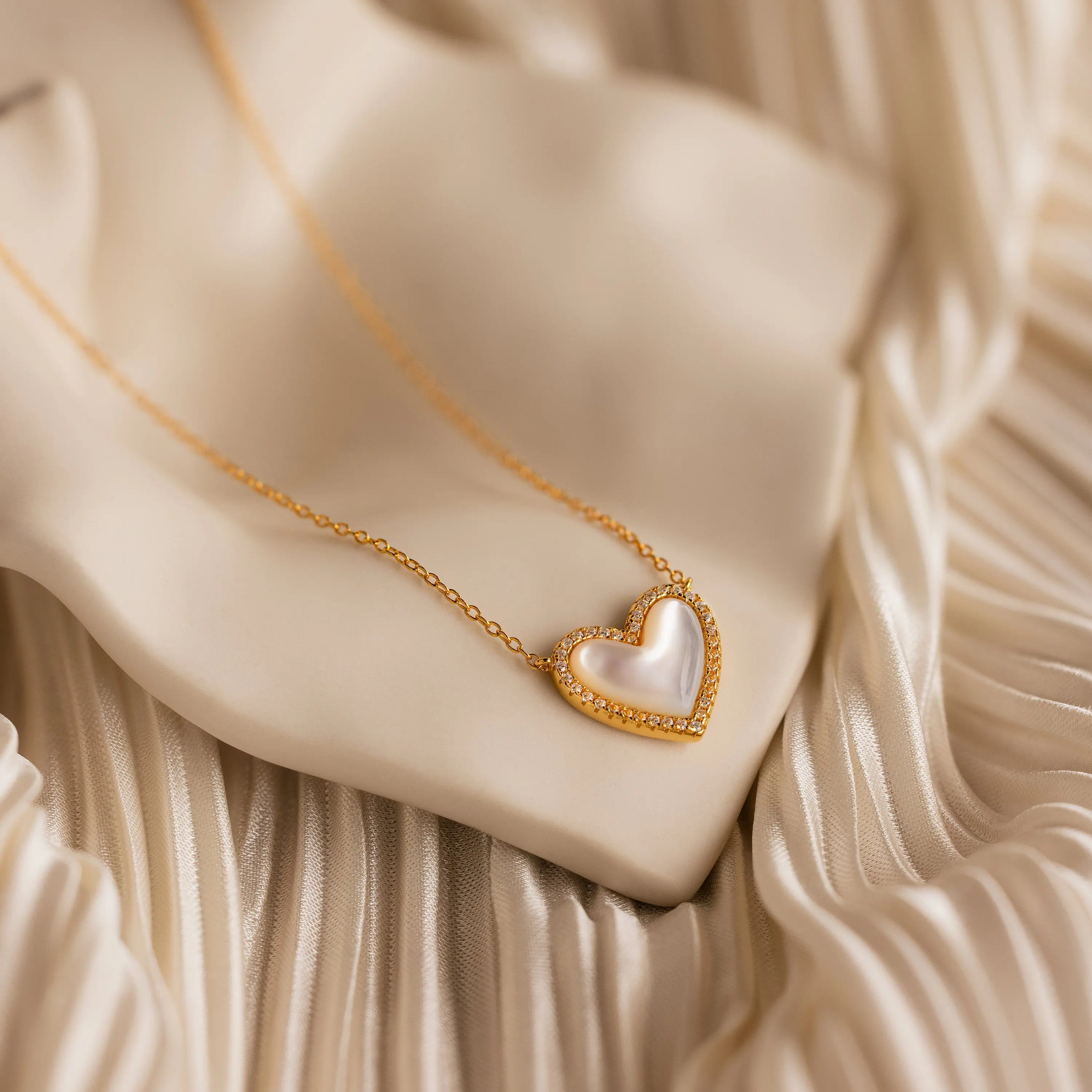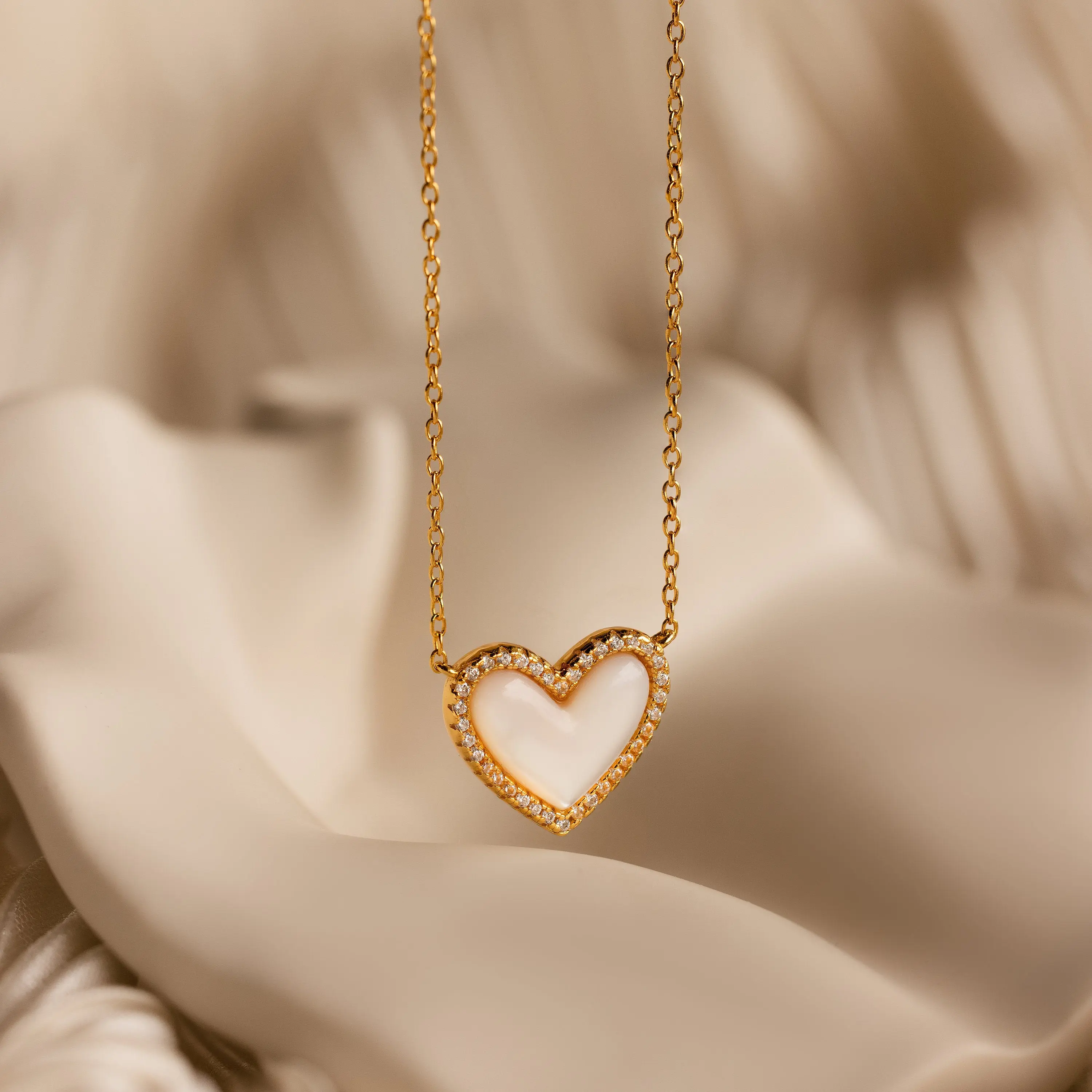 Pave Mother of Pearl Heart Necklace by Caitlyn Minimalist