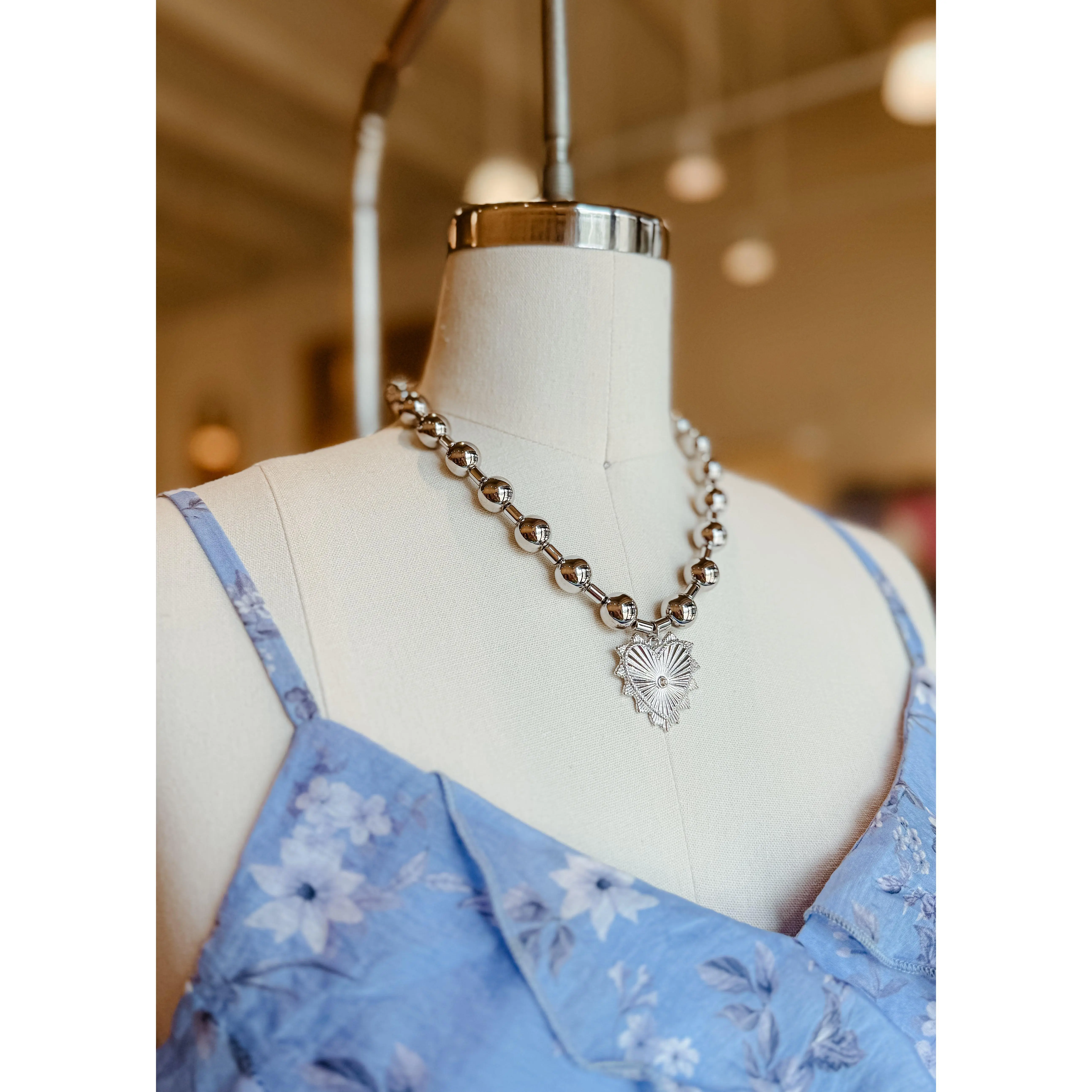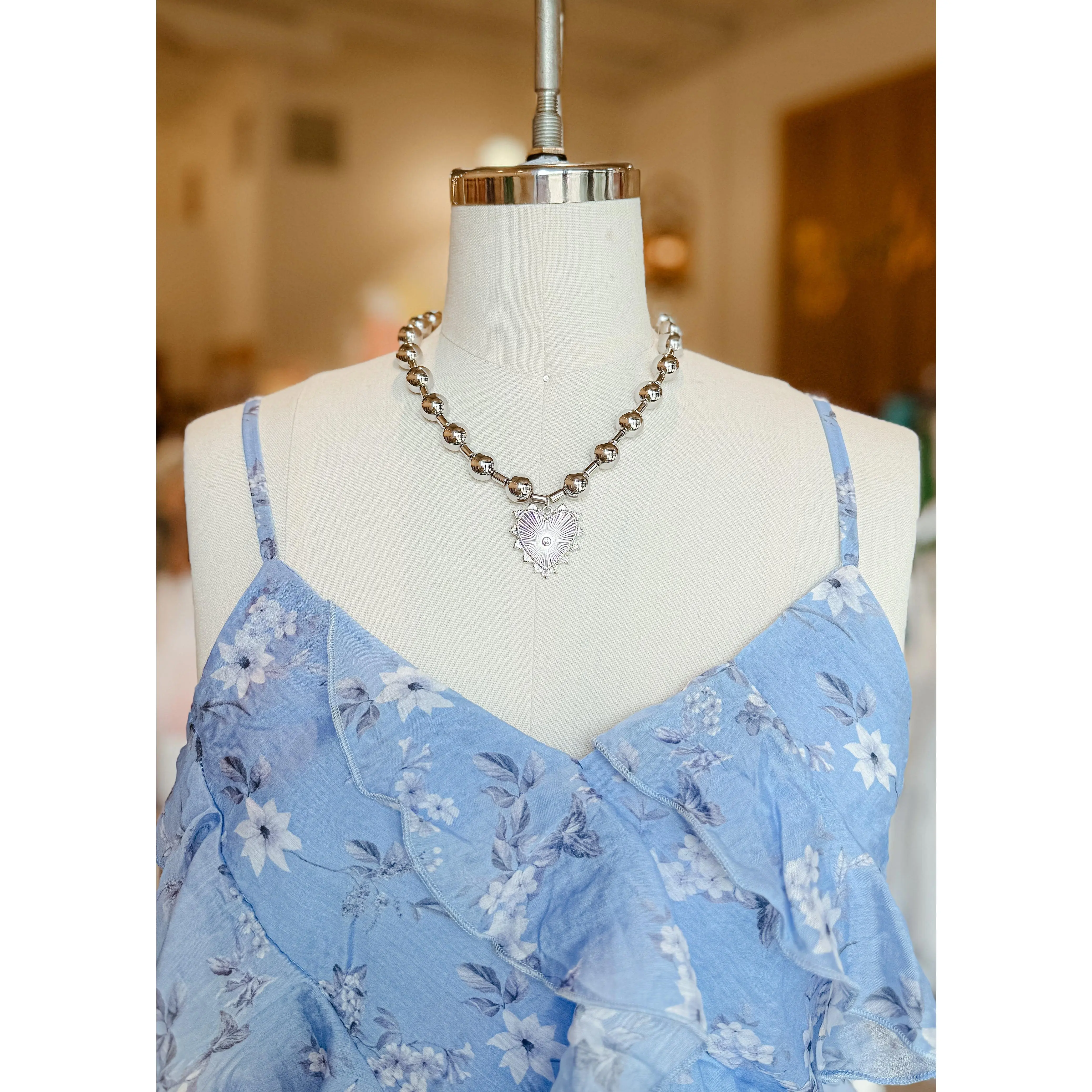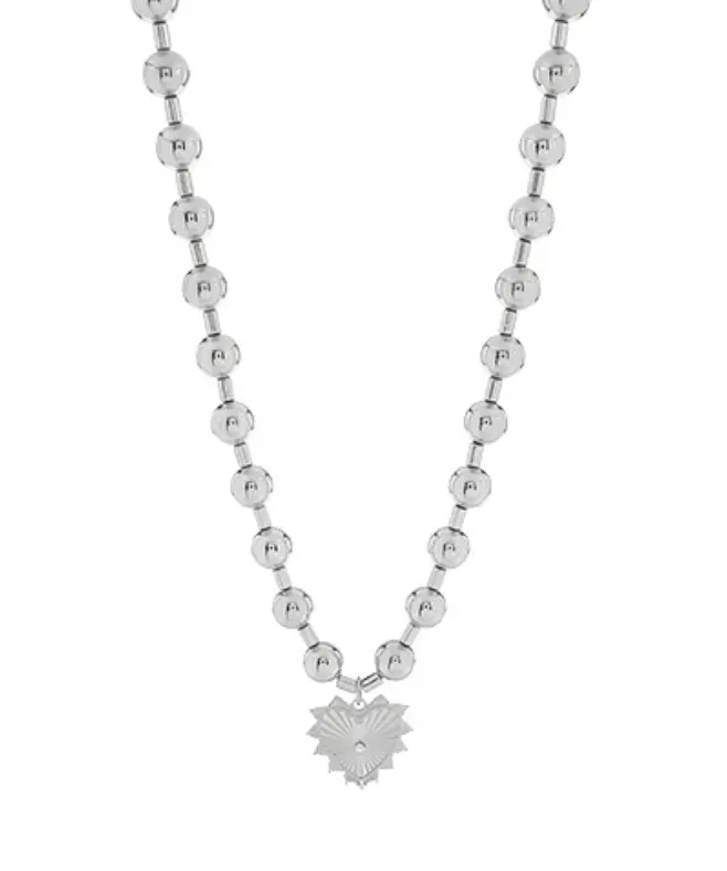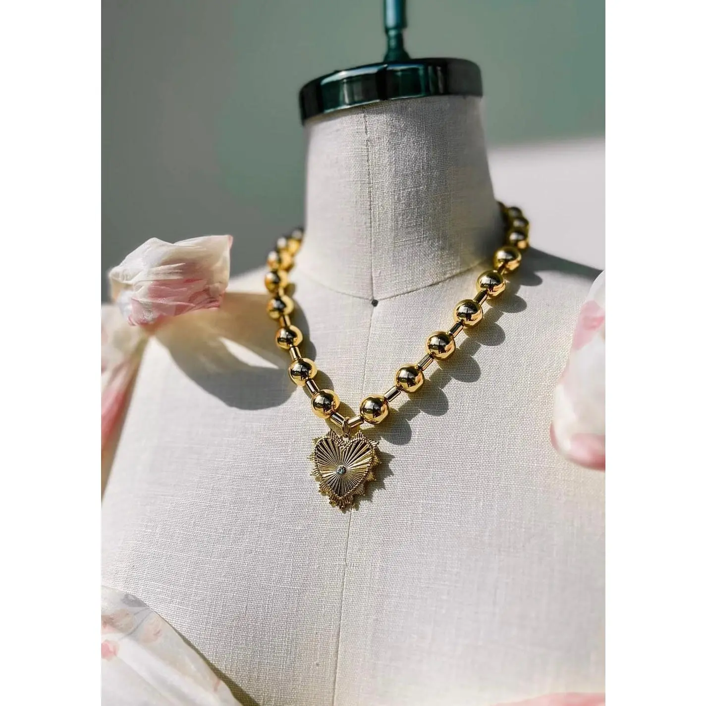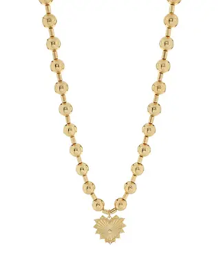 Such a cute chunky necklace! The gold balls are super lightweight and comfortable, and the heart pendant is metal. It’s the perfect mix of bold and pretty. Definitely a 10/10 piece!