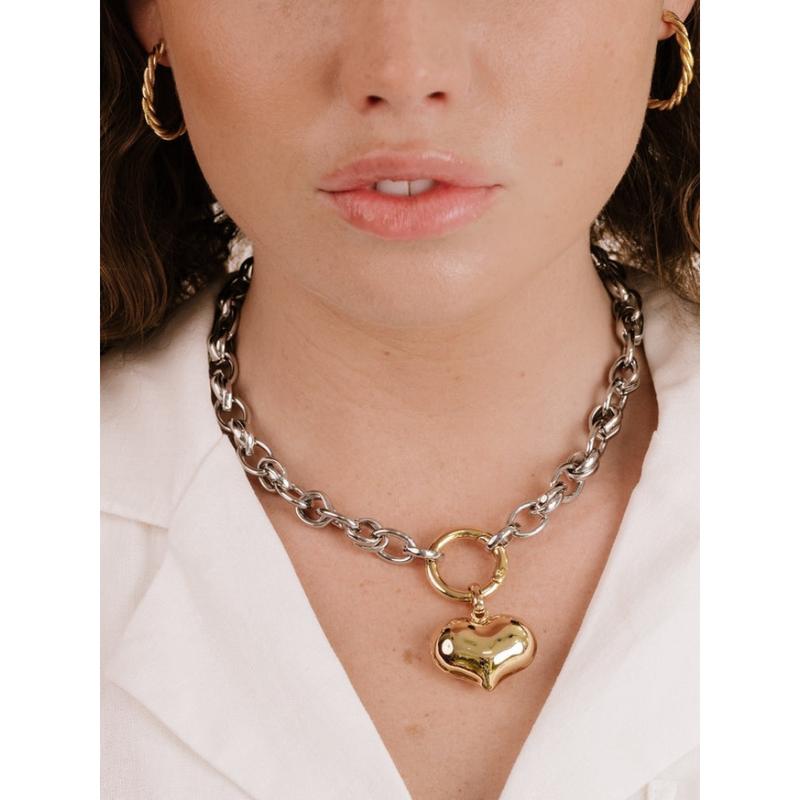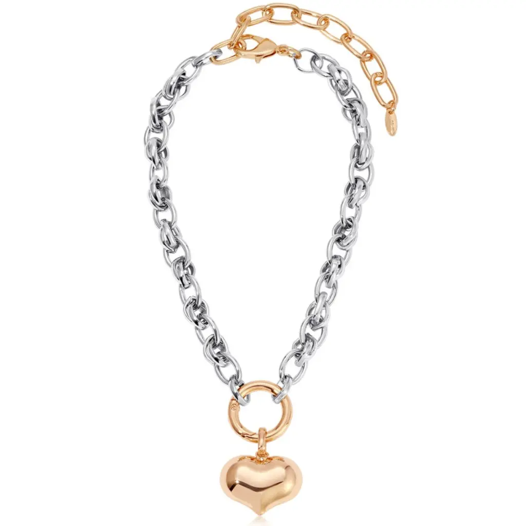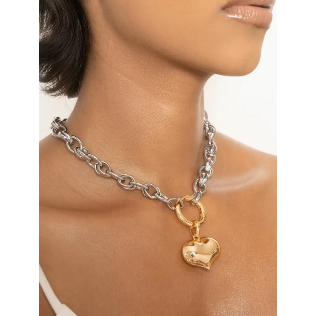Elevate your everyday style with the Ettika Locked in Mixed Metal Heart Necklace, a stunning piece designed to combine elegance, durability, and versatility. Crafted with 18K gold plating, rhodium plating, steel, and brass, this gold necklace for women is built to last, resist tarnishing, and maintain its shine for daily wear. Its mixed metal design adds a contemporary touch, making it a standout fashion accessory for casual, professional, or special occasions.