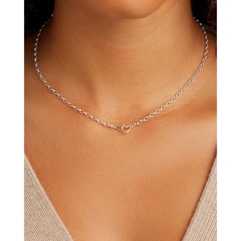 Parker Heart Mini Necklace – A Symbol of Style, Love, and Connection Add a little love to your layers with the Parker Heart Mini Necklace. Featuring a gold-plated chain and a delicate heart charm closure, this piece brings a sweet yet elevated touch to any look. Whether worn solo or styled with other chains, it's a beautiful reminder of what matters most—style, connection, and self-expression. Why You’ll Love It: Heartfelt Style – Subtle heart detail adds charm and meaning. Everyday Elegance – A classic chain silhouette with a modern twist. Layer-Ready – Perfect for mixing and matching with your favorite necklaces. Wear It Your Way – Beautiful solo or stacked for a statement. Versatile Finish – Available in 18k gold and silver plating to match your vibe. Specifications: Total Length: 16 1/2" Chain Links: 3/16" by 1/8" Heart Closure: 5/16" Material: Silver or 18k gold-plated or silver-plated brass Care Tip: Avoid contact with alcohol-based products to preserve finish Wear your heart out—with the Parker Heart Mini Necklace, love is always in style.