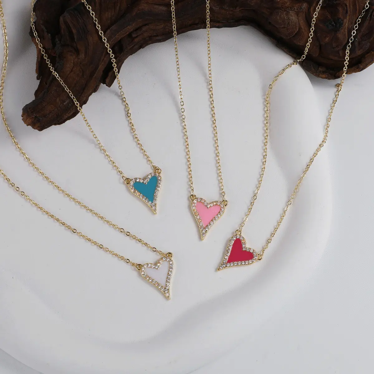 ·Color Options: Available in four vibrant colors—pink, bright red, blue, and beige—each heart-shaped pendant is surrounded by sparkling cubic zirconia, offering a unique and eye-catching look.