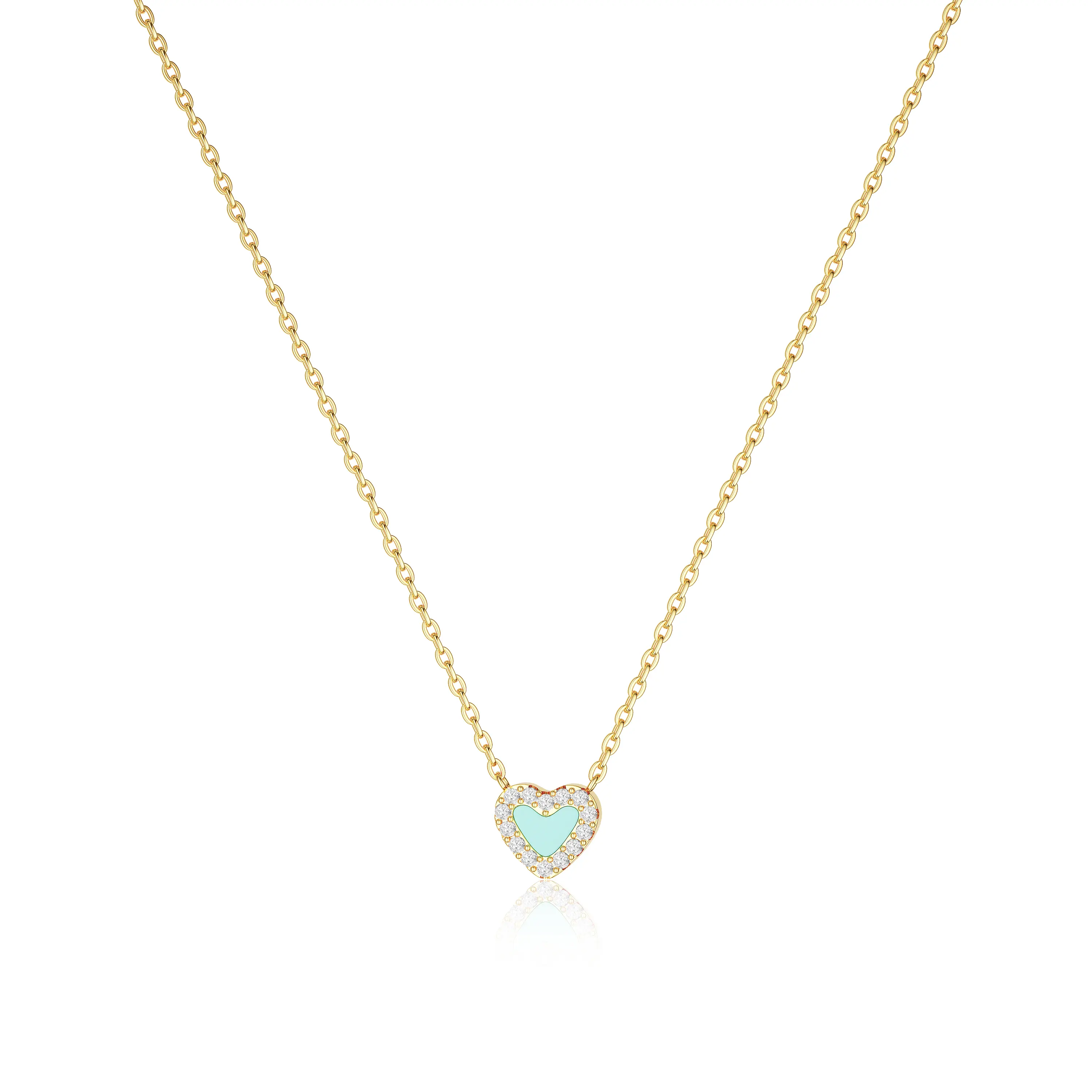 Dearmay Heart Necklace for Women, Dainty Love Heart Pendant Necklaces Small Cute Trendy Womens Charm Necklace Jewelry Greenish Spring