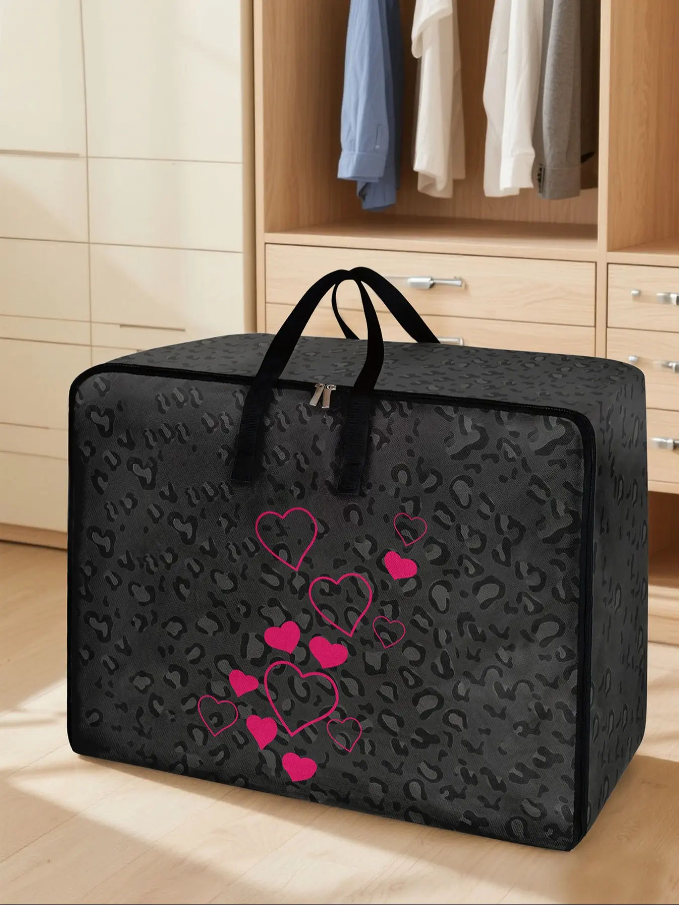Heart Pattern Storage Box, Large Space-Saving Clothing Storage Organizer with Convenient Handles, Ideal for Moving, Travel, Camping, Dormitory, Bedroom