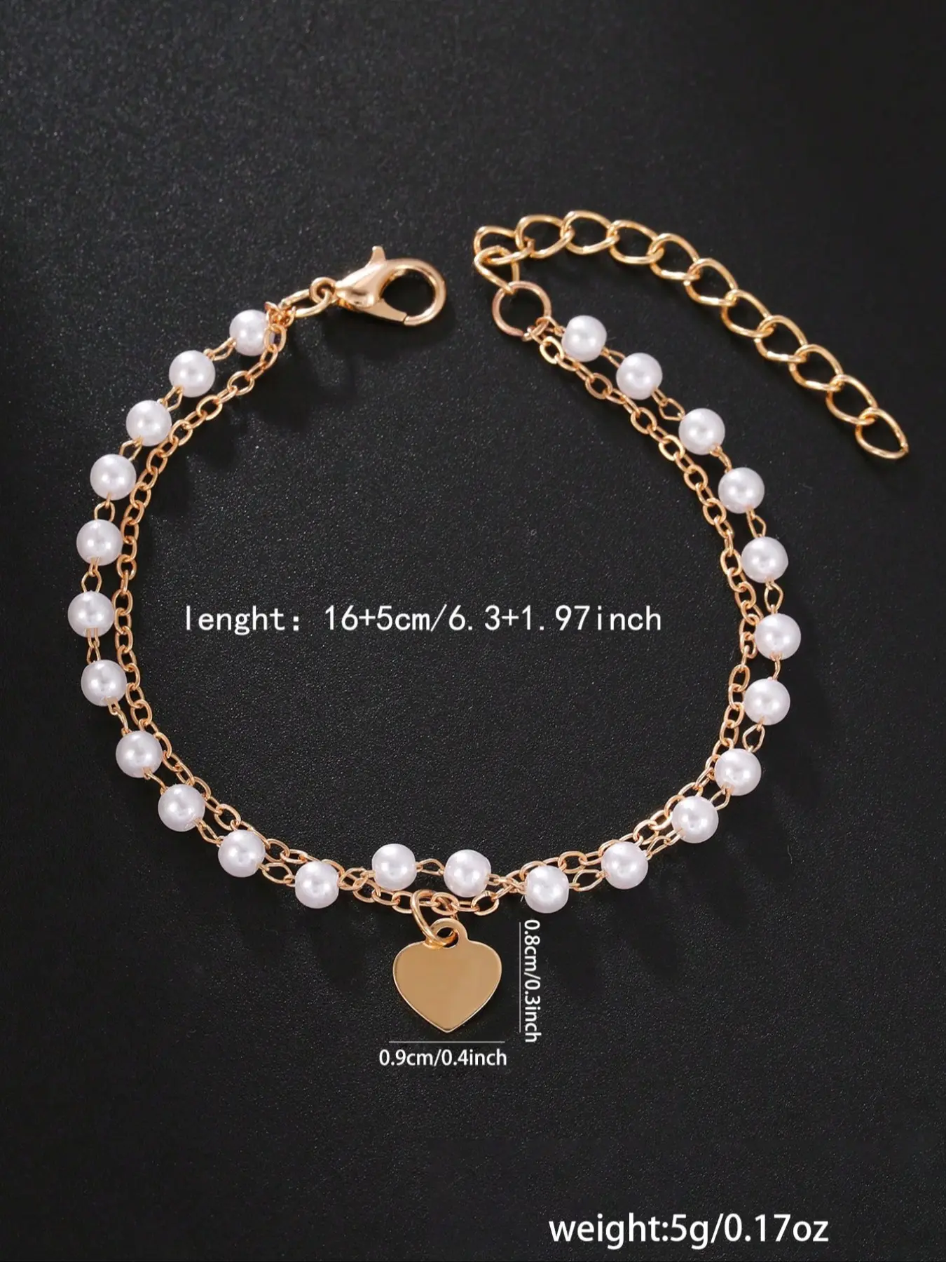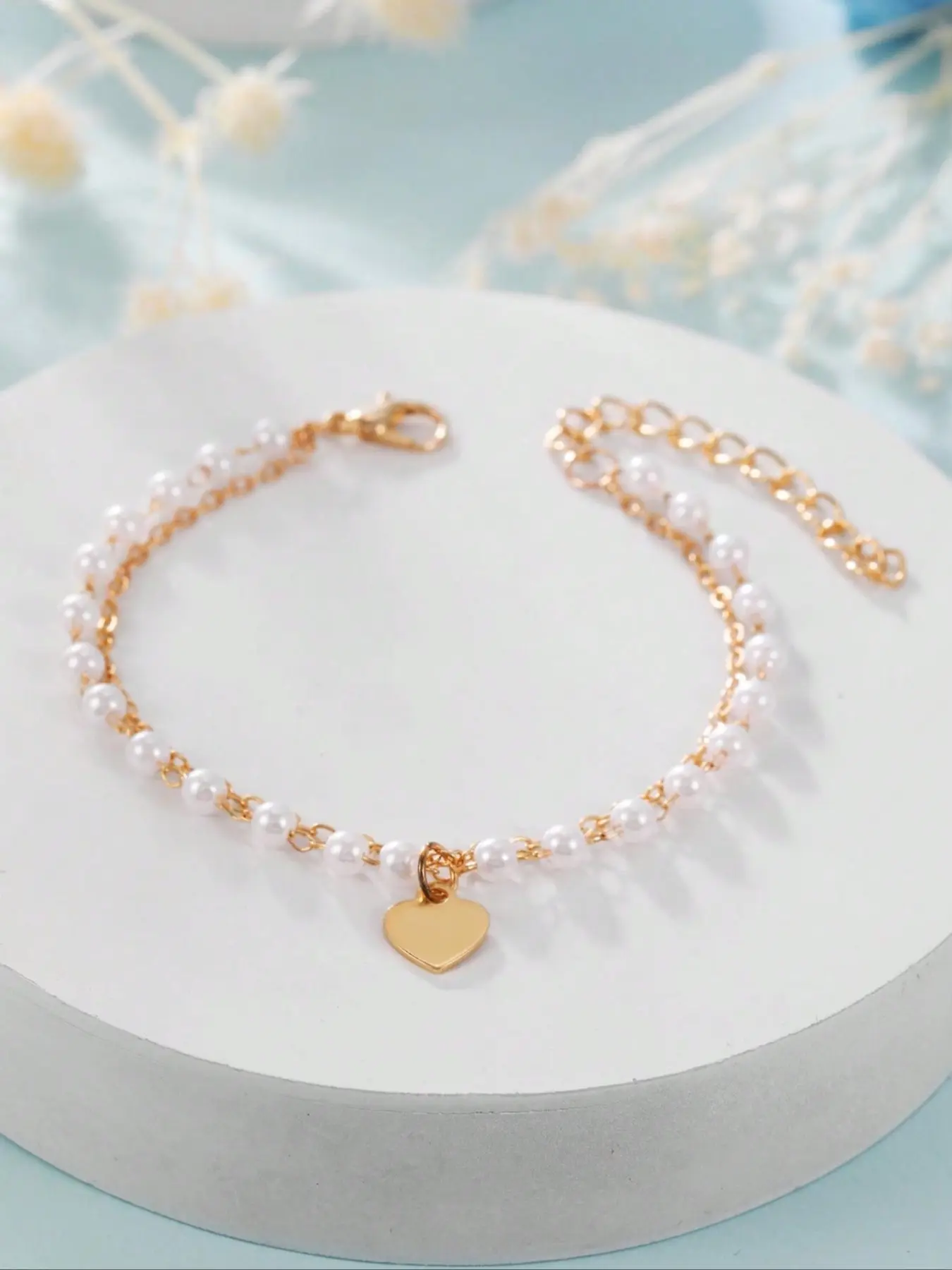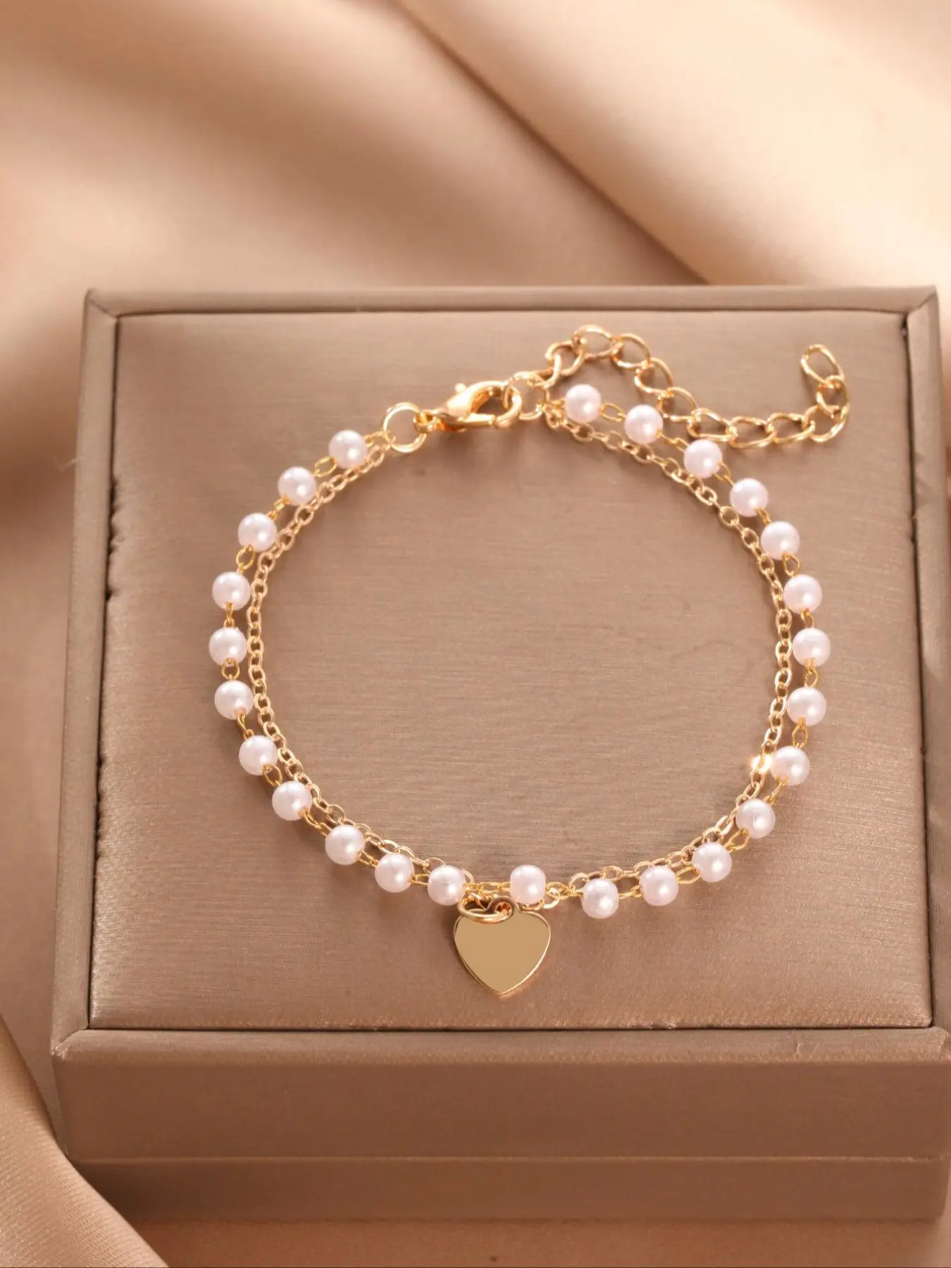 ăLayered Designă: This double-layer heart pearl bracelet features a unique heart pendant, setting it apart from other jewelry.