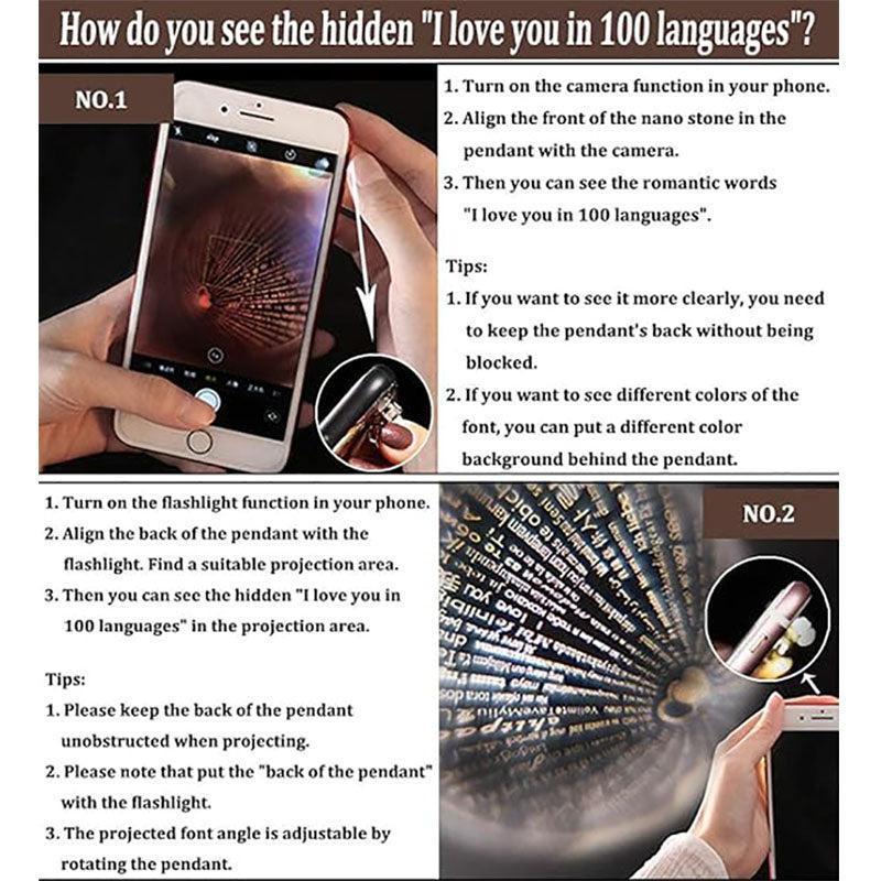 【As A Gift For Someone】: You can buy this romantic "I love you in 100 languages" necklace to your girlfriend,fiancee, wife, mom, daughter,sisters, best friends, grandma as a Birthday gift,Valentine's day gift, Wedding anniversary gift, Mother's Day gift,Thanksgiving gift,Christmas gift, etc.