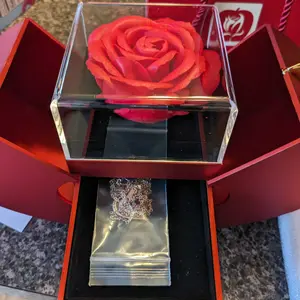 Why is my necklace not in the flower case. I have everything but the necklace after opening the sealed package. 📦 Did I just get scammed by Tiktok? This is not right V-day is almost here and I need the exact silver necklace with pink heart that comes with the pink flower. Please correct this asap.