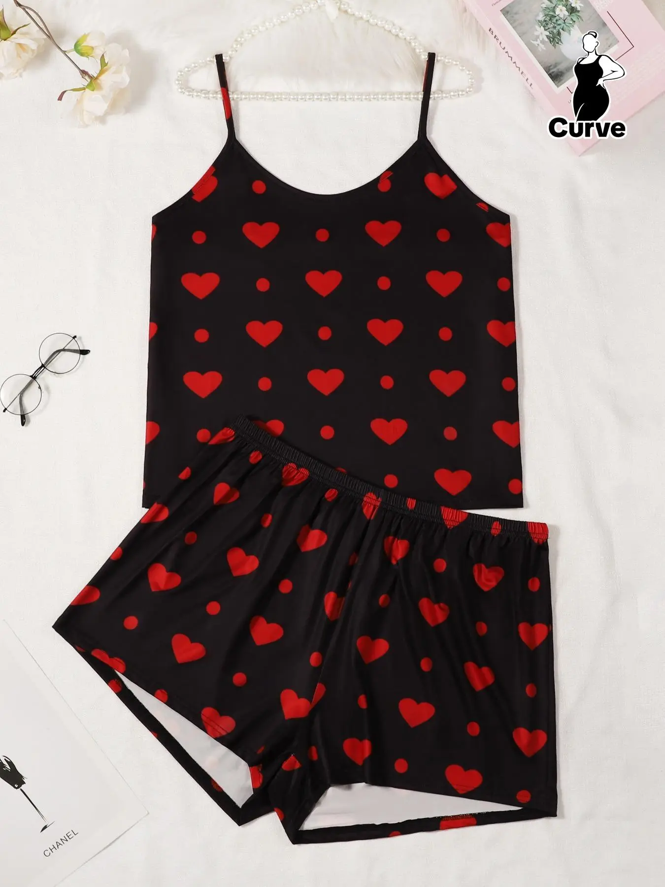 Cute heart set. Only one less star because the shirt felt smaller than what was intended to be. I was hoping it would be more loose in the top but it was opposite. The shorts was very loose and the shirt was kinda snug fitting but still will wear and worth it