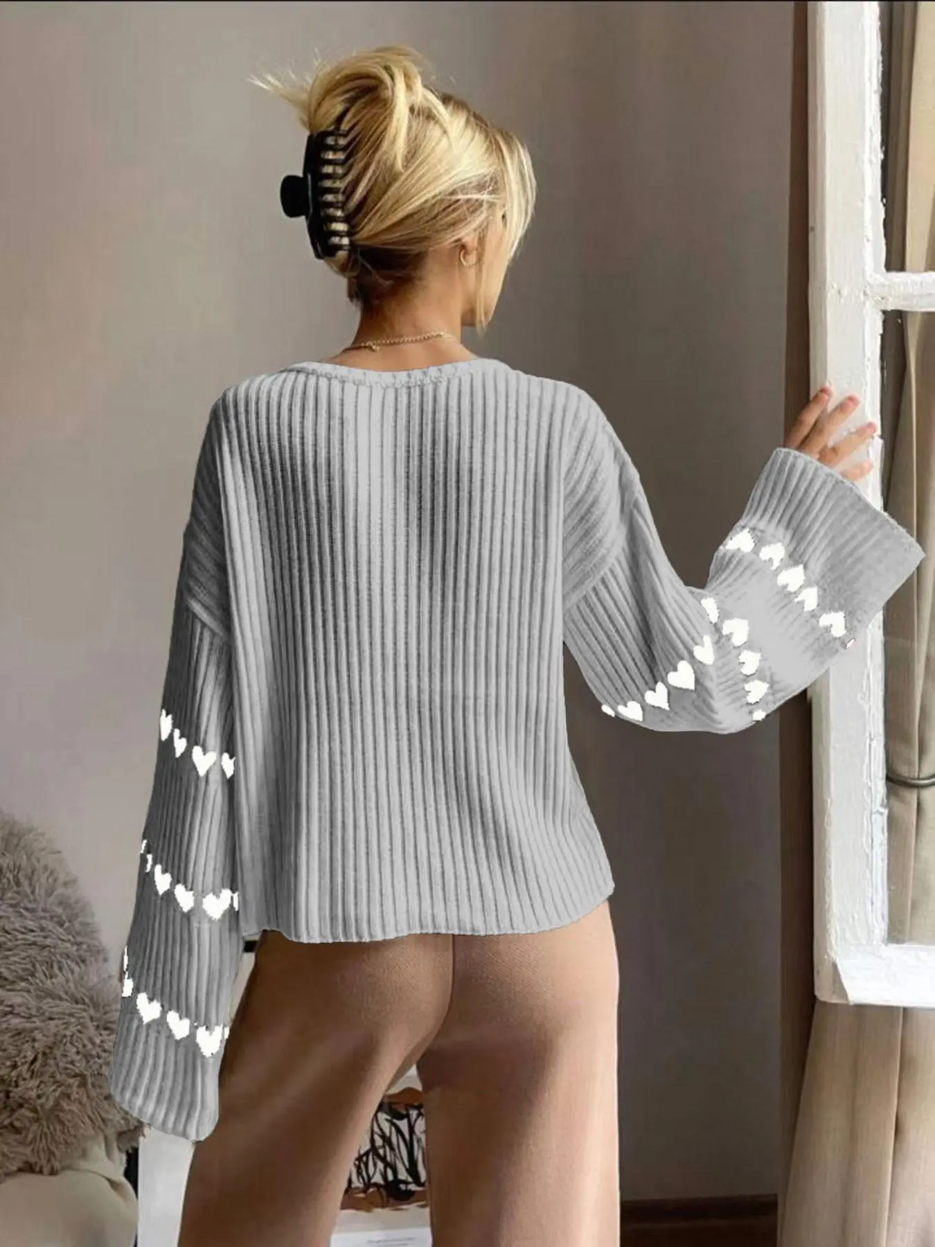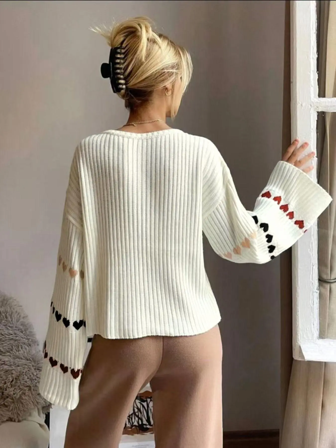 This is same sweater but I got red this time. It has white hearts on the sleeves.