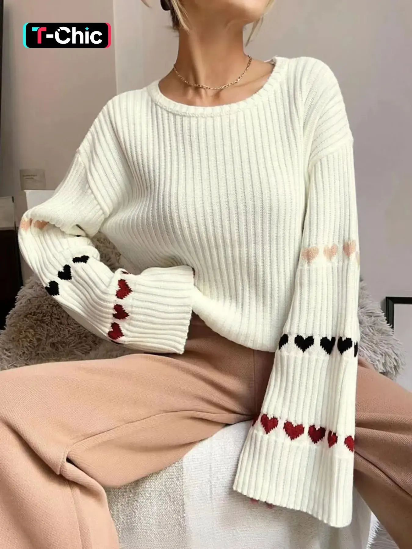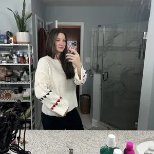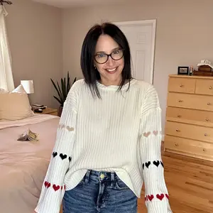 I am in love with this sweater! I use as a shirt! The sleeves are what sold me!!! Very cute and comfortable!!! And the colors are beautiful! I really do recommend it! Plus ... Perfect for Valentines day!