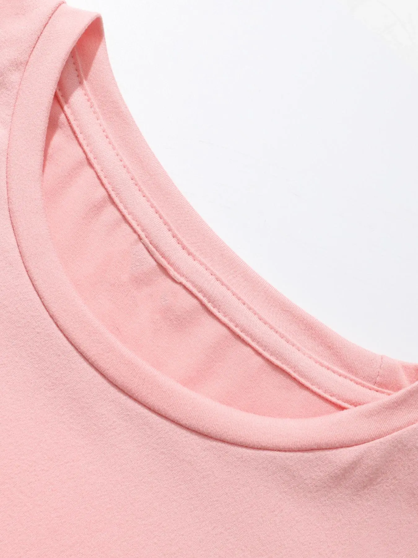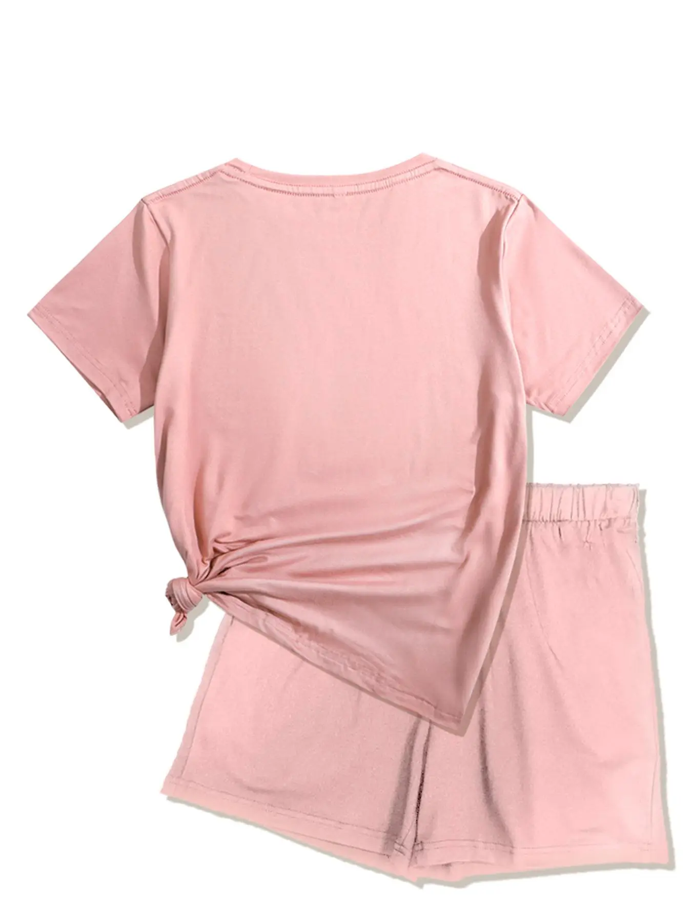 5. Two-Piece Set Women's Heart Print Tee & Shorts, Casual Fitted Short Sleeve Crewneck T-shirt & Skinny Shorts, Ladies Summer Clothes for Daily Wear