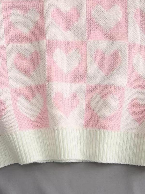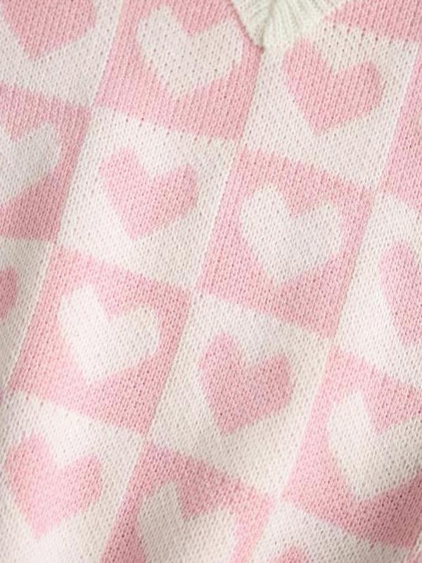 5. Women's Heart Print V Neck Sweater Vest, Casual Comfy Sleeveless Knit Top for Daily Outdoor Wear, Women Knitwear for Spring & Fall