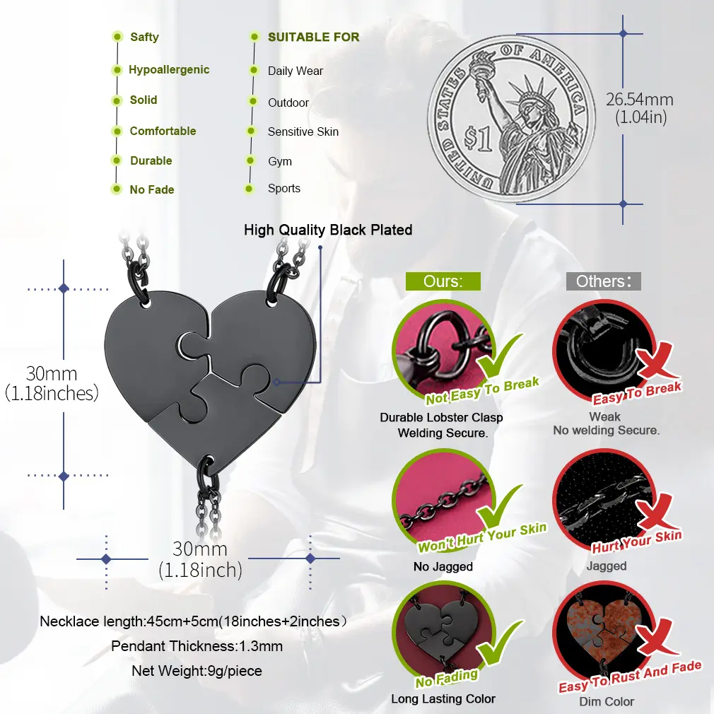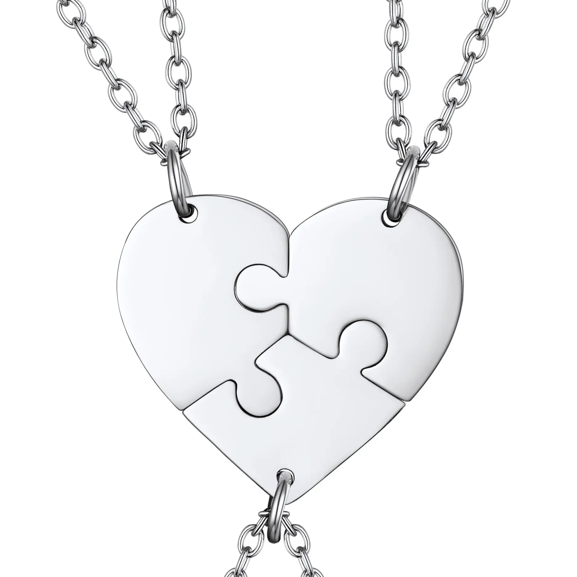·Design Inspiration: 3 pieces blank jigsaw puzzle shape pendant, Could scrabble up one heart, 3-items necklace design, You could share and wear it with your lover, friend, family and so on.