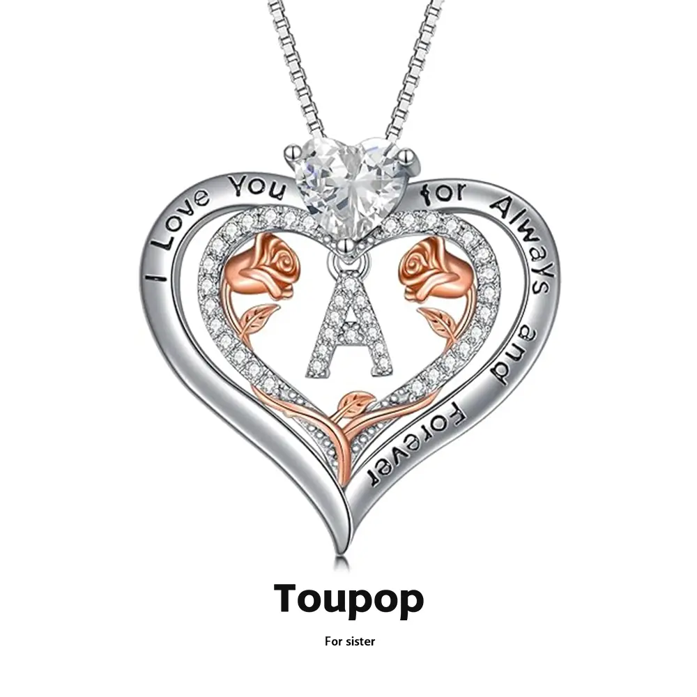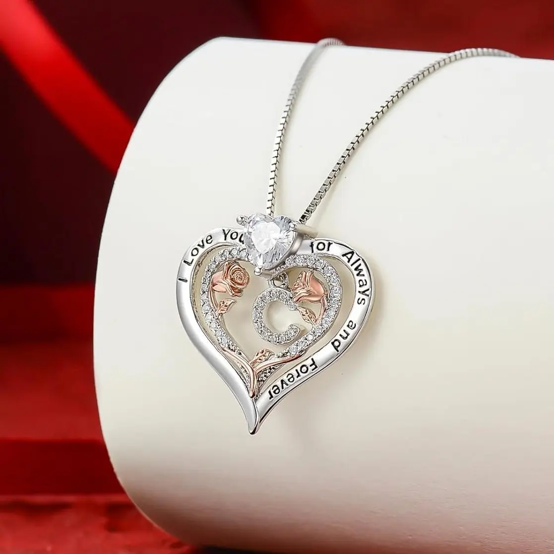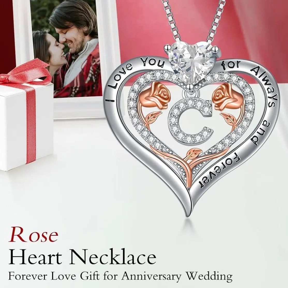 🌟 Elegant Heart Rose Initial Pendant Necklace