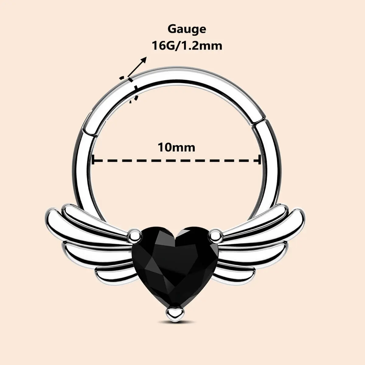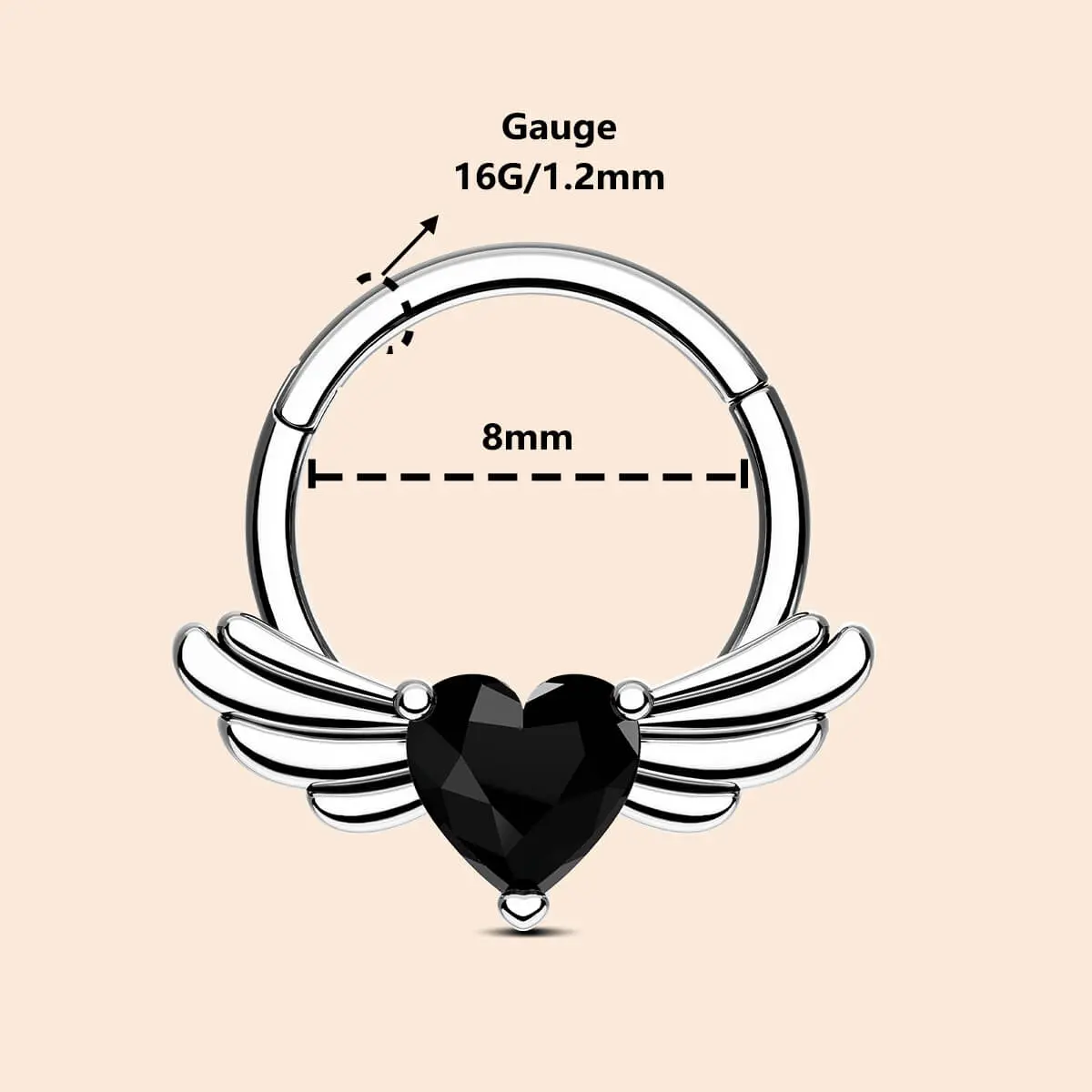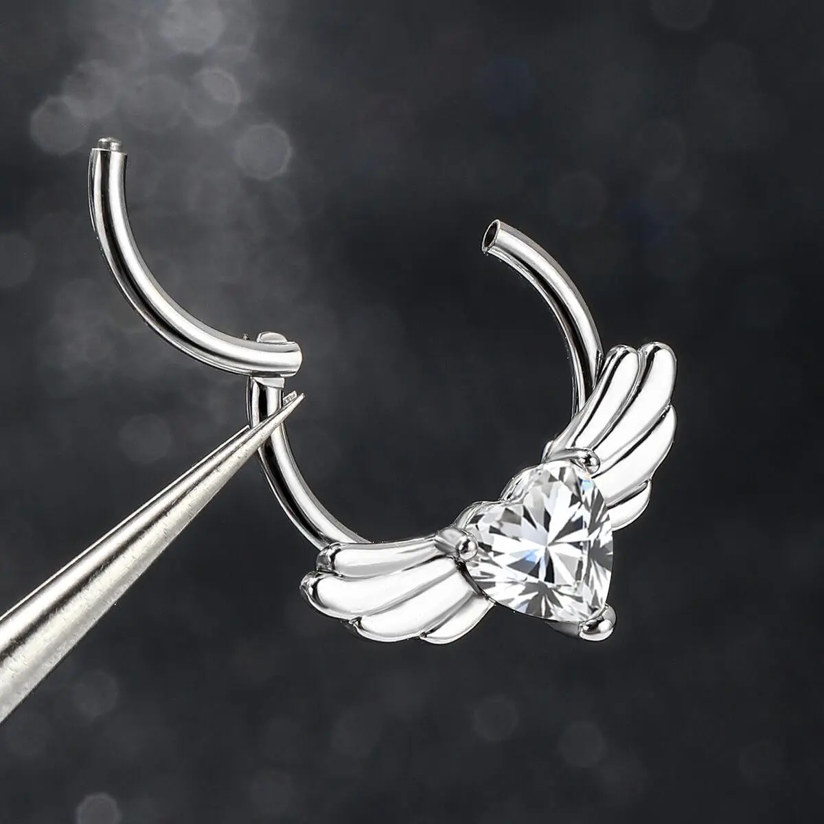 Oufer 16G Heart Shape CZ Hinged Segment Septum Nose Ring Piercing with Wings for Easy Wear and Adjustable Comfort Body Jewelry Wearable Jewelry