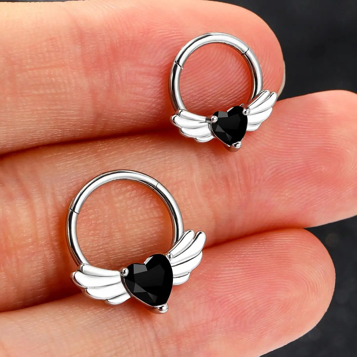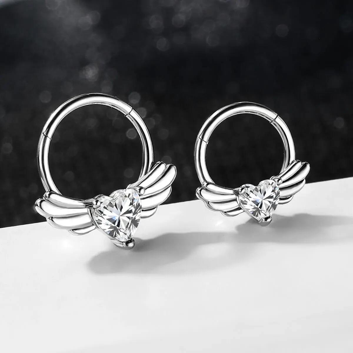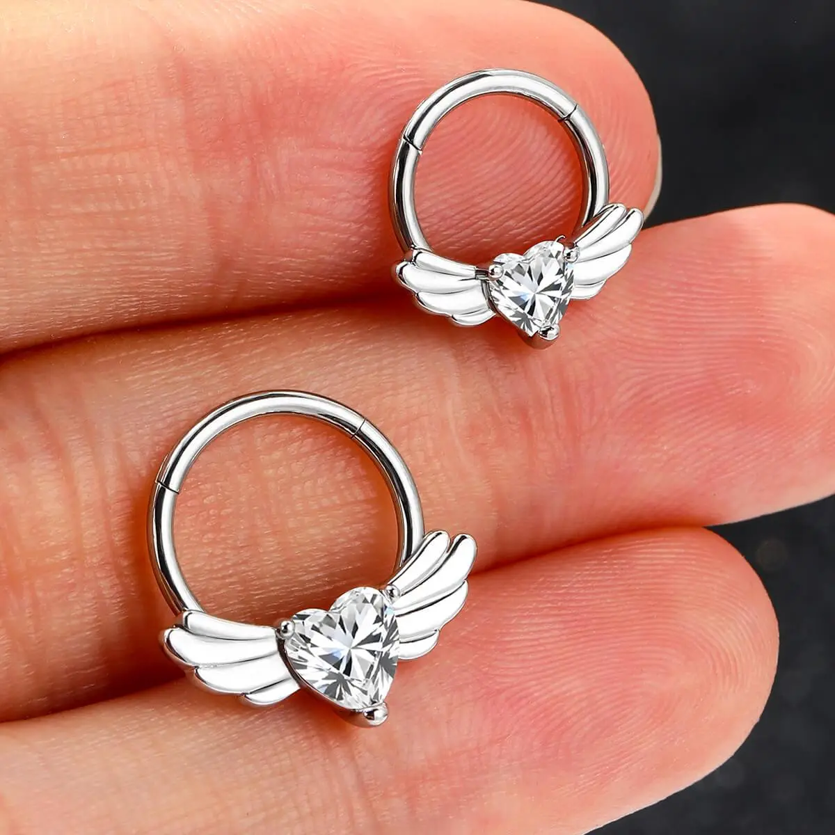 Oufer 16G Heart Shape CZ Hinged Segment Septum Nose Ring Piercing with Wings for Easy Wear and Adjustable Comfort Body Jewelry Wearable Jewelry