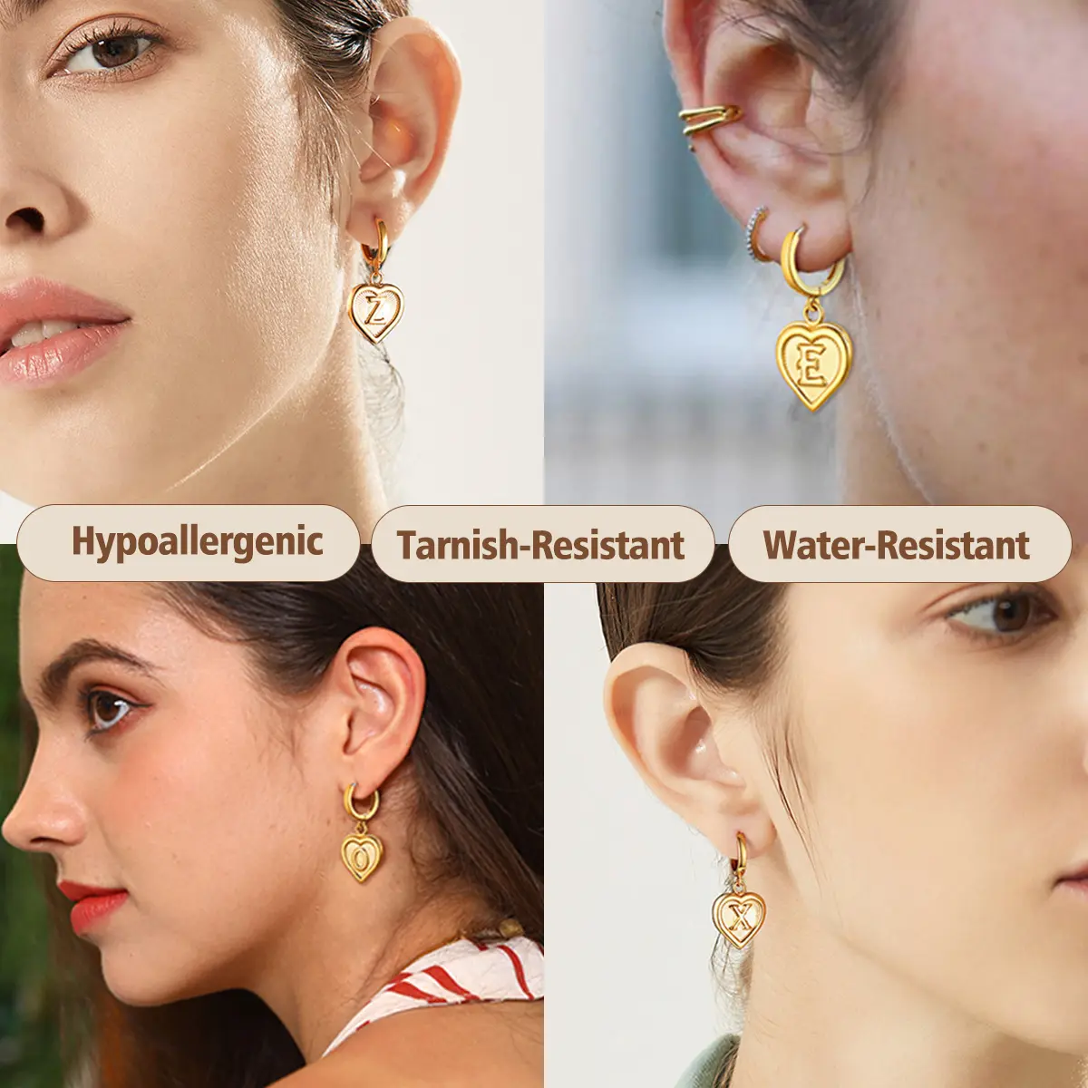 Stylish hoop earrings with heart-shaped letter charms, available in all 26 letters. These lightweight, trendy hoops add a personal touch to your look, perfect for gifting or daily wear.
