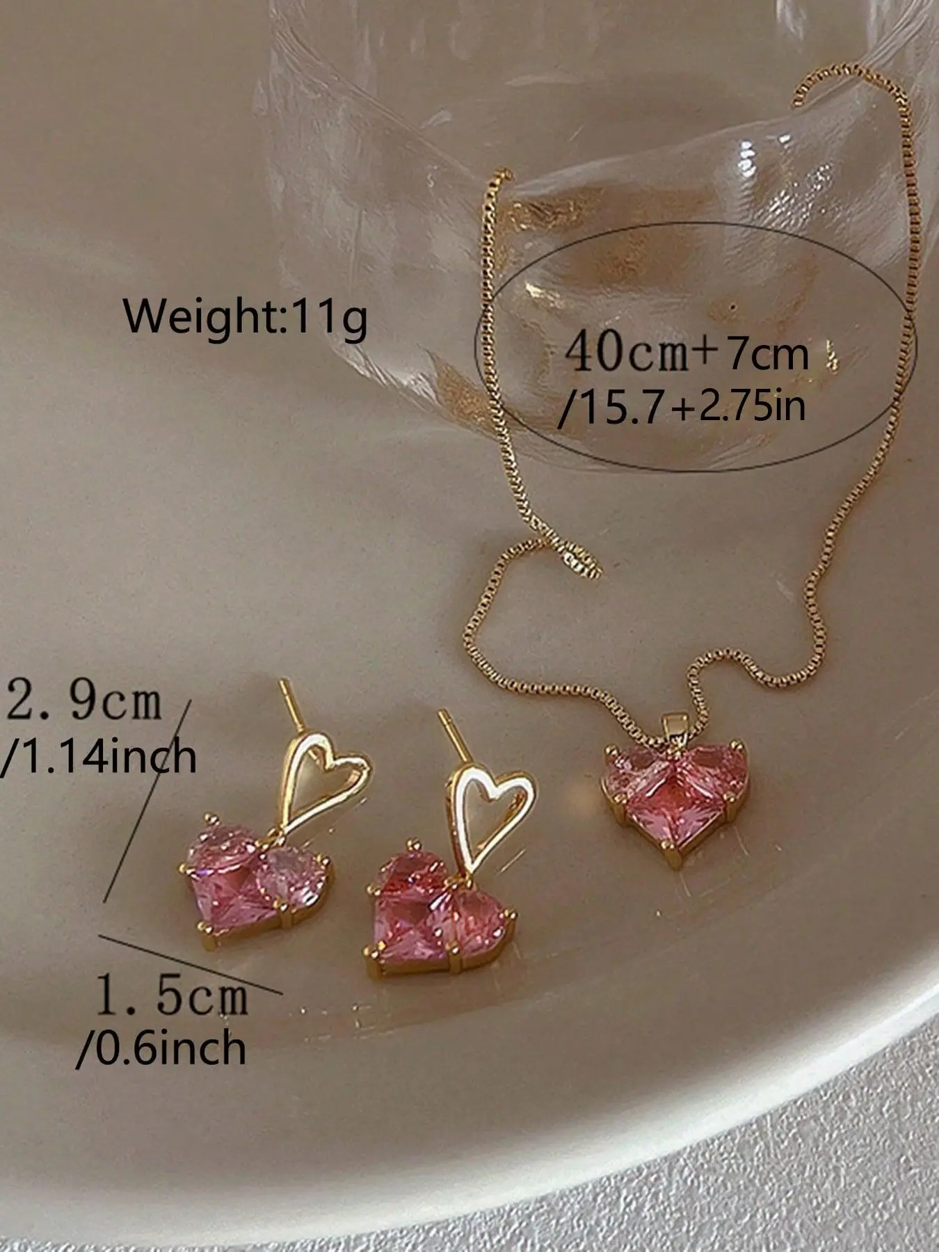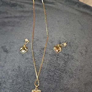 The necklace is beautiful. The earrings cute as well. It will be perfect for my daughter. It reminds me of the toy necklace set that was made out of plastic in the Cinderella dress up set but this one is real with nice quality. I'm more of a stud girl but overall I give it a 8/10 for children.