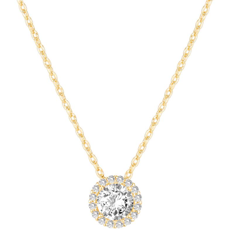 Pendant sparkles as it sits in a halo of 16 cubic zirconia gems. Simple yet elegant, our faux diamond necklace is a classic necklace for every woman! Featuring a 19 inches sliding chain that will comfortably fit all neck sizes.