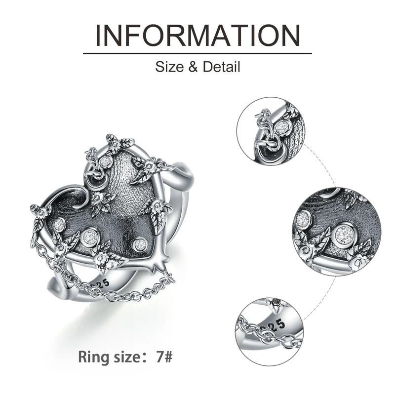 Crafted from high-quality 925 sterling silver, this ring features a heart-shaped design that is both elegant and eye-catching. The intricate details on this ring are sure to impress anyone who sees it. The zircon stones add an extra touch of sparkle that will make you stand out in any crowd.