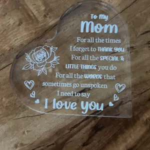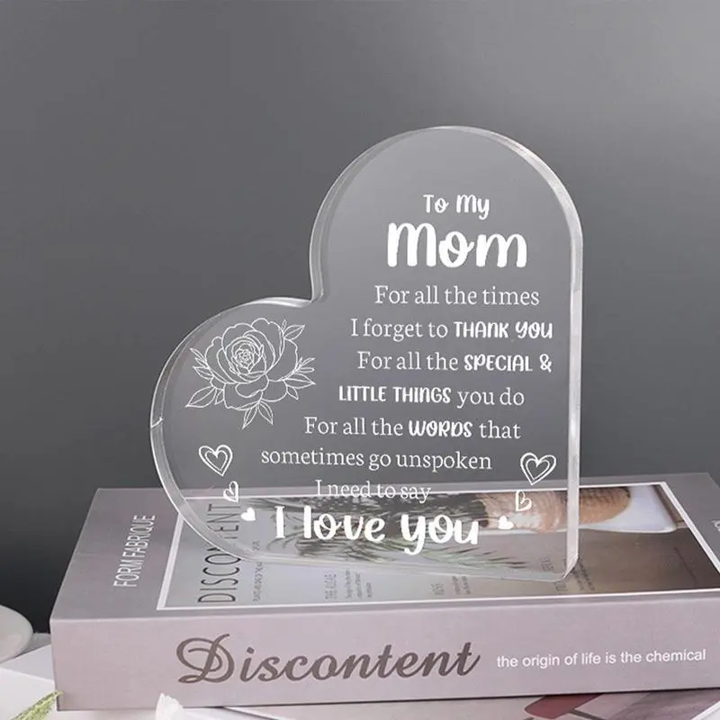 Conclusion 🌟This heart-shaped acrylic block is a thoughtful gift for mom, showcasing your love and appreciation. It is made of high-quality acrylic, is durable, and suitable for any occasion. Contact us for any concerns.