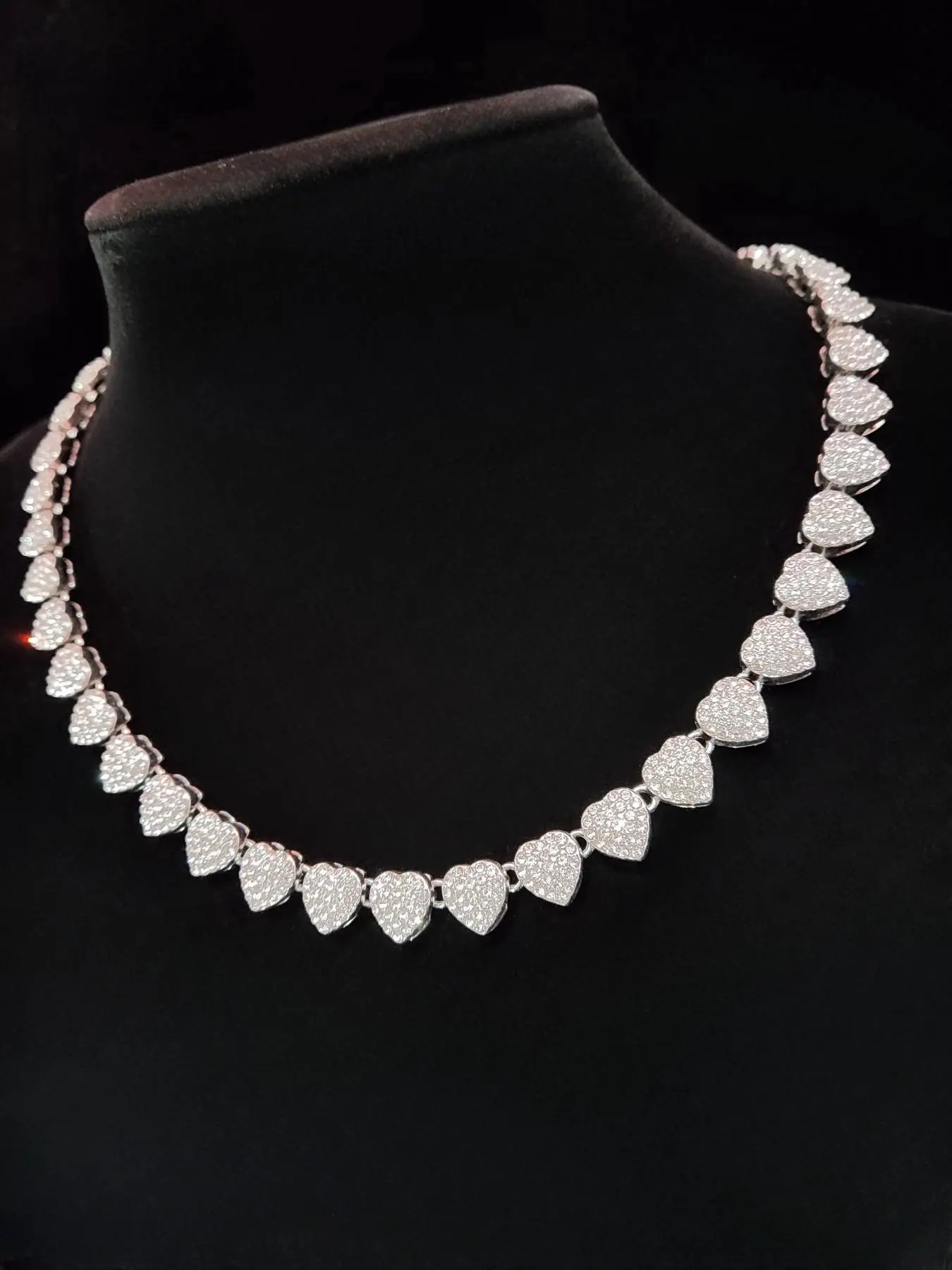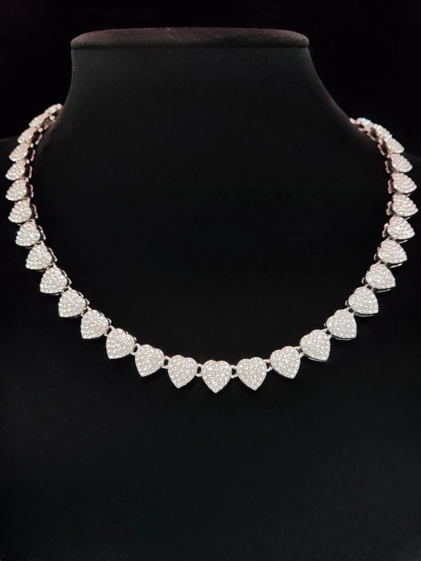 GLD Heart Diamond Tennis Necklace in 18k Yellow Gold 6mm Length 16 18 20 inches Everyday Wear Perfect Gift